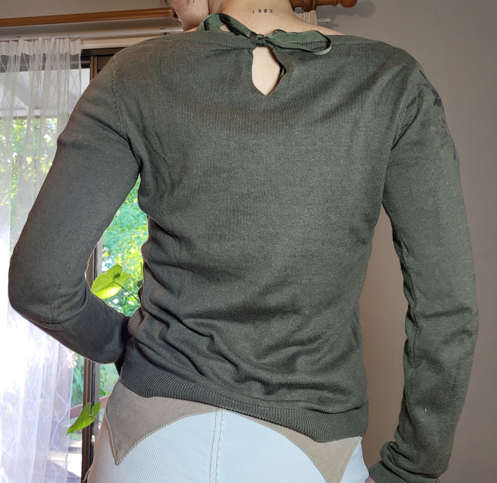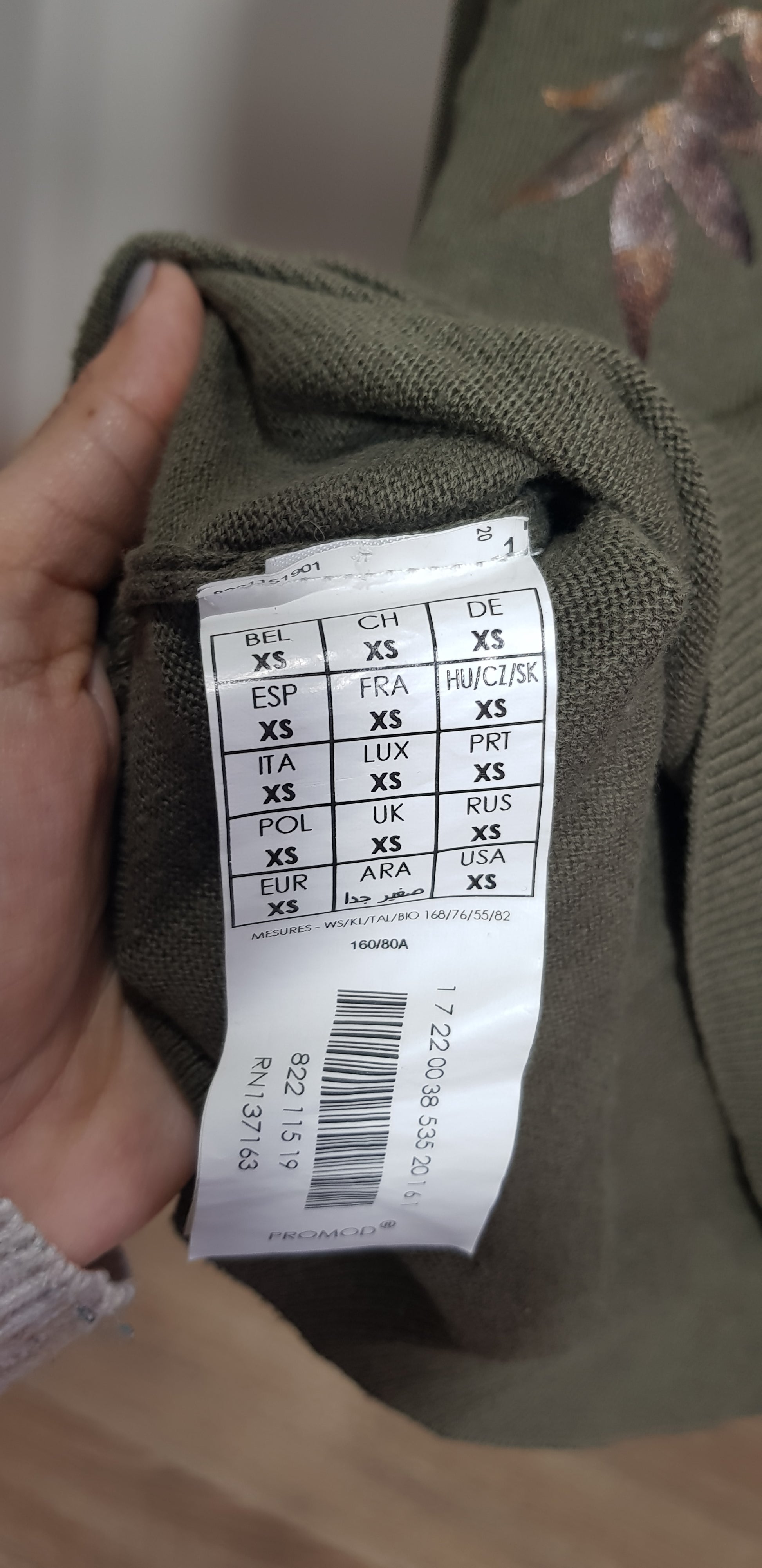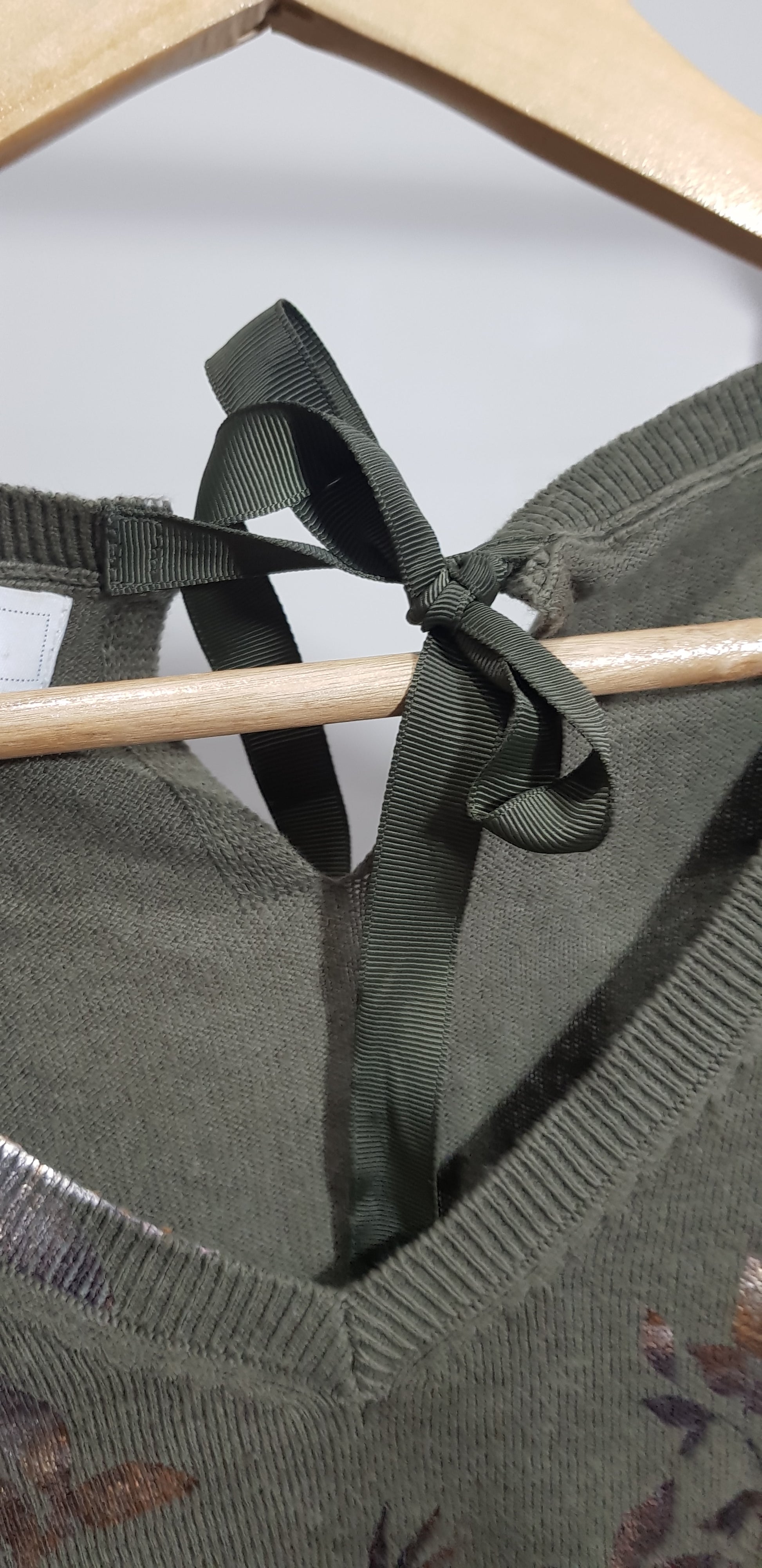 This gorgeous promod top was purchased in Spain several years ago. Still good preloved condition. Long sleeves, with gold details in front and a super cute back. Size XS. Best fit size 6-8 in my opinion.