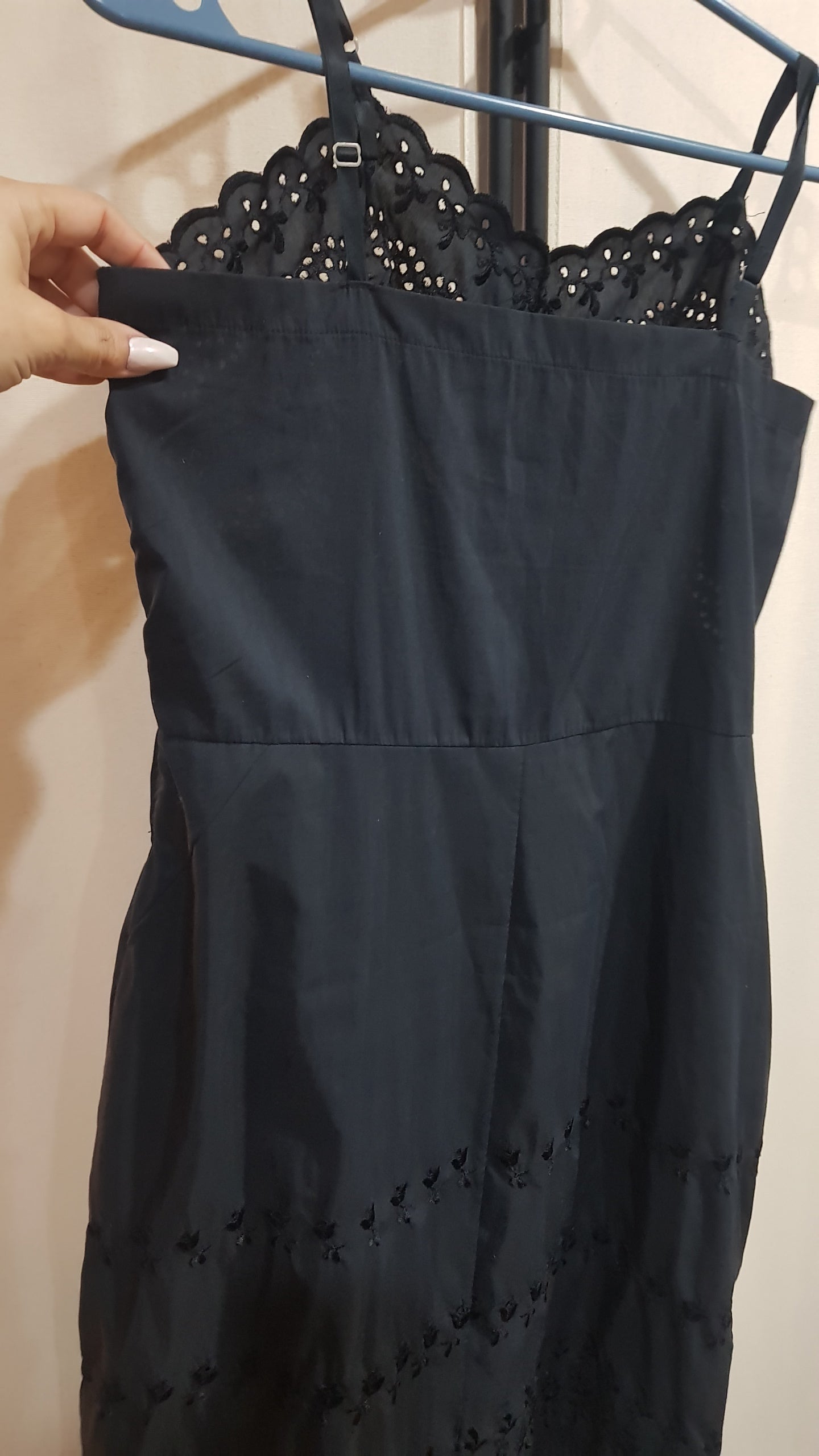Adorable Black Midi Dress with embroidery details.