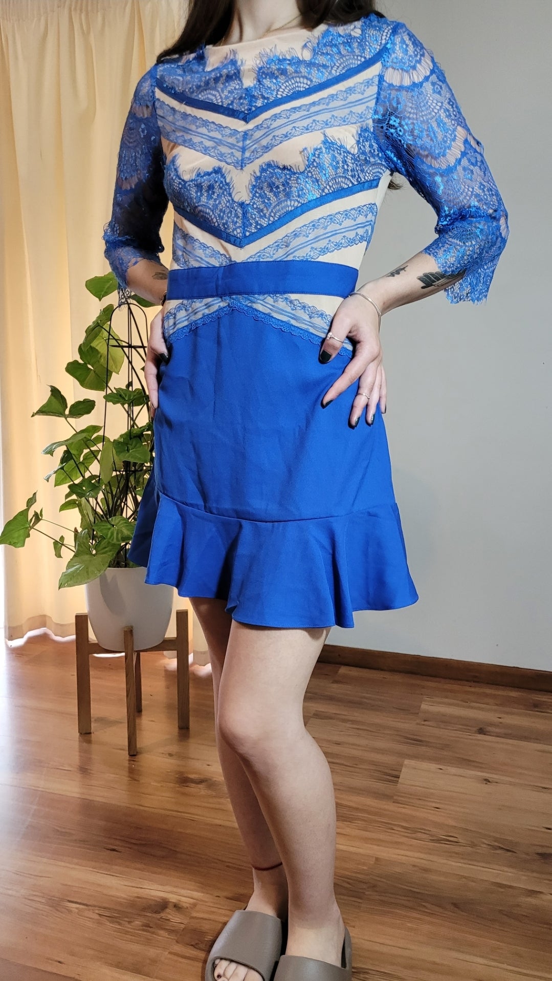 Beautiful blue and nude dress in excellent condition! Size 10, little bit stretchy.