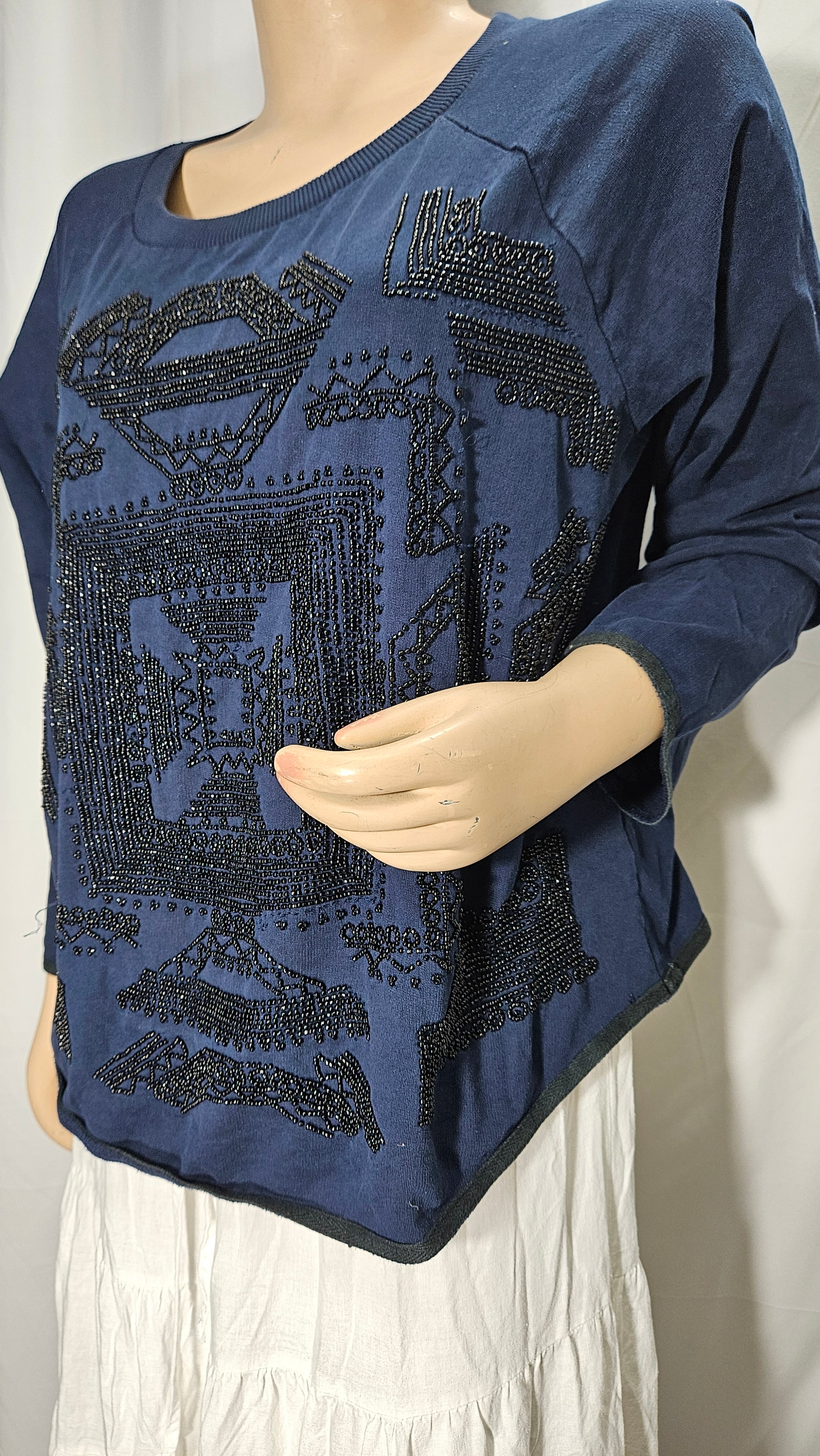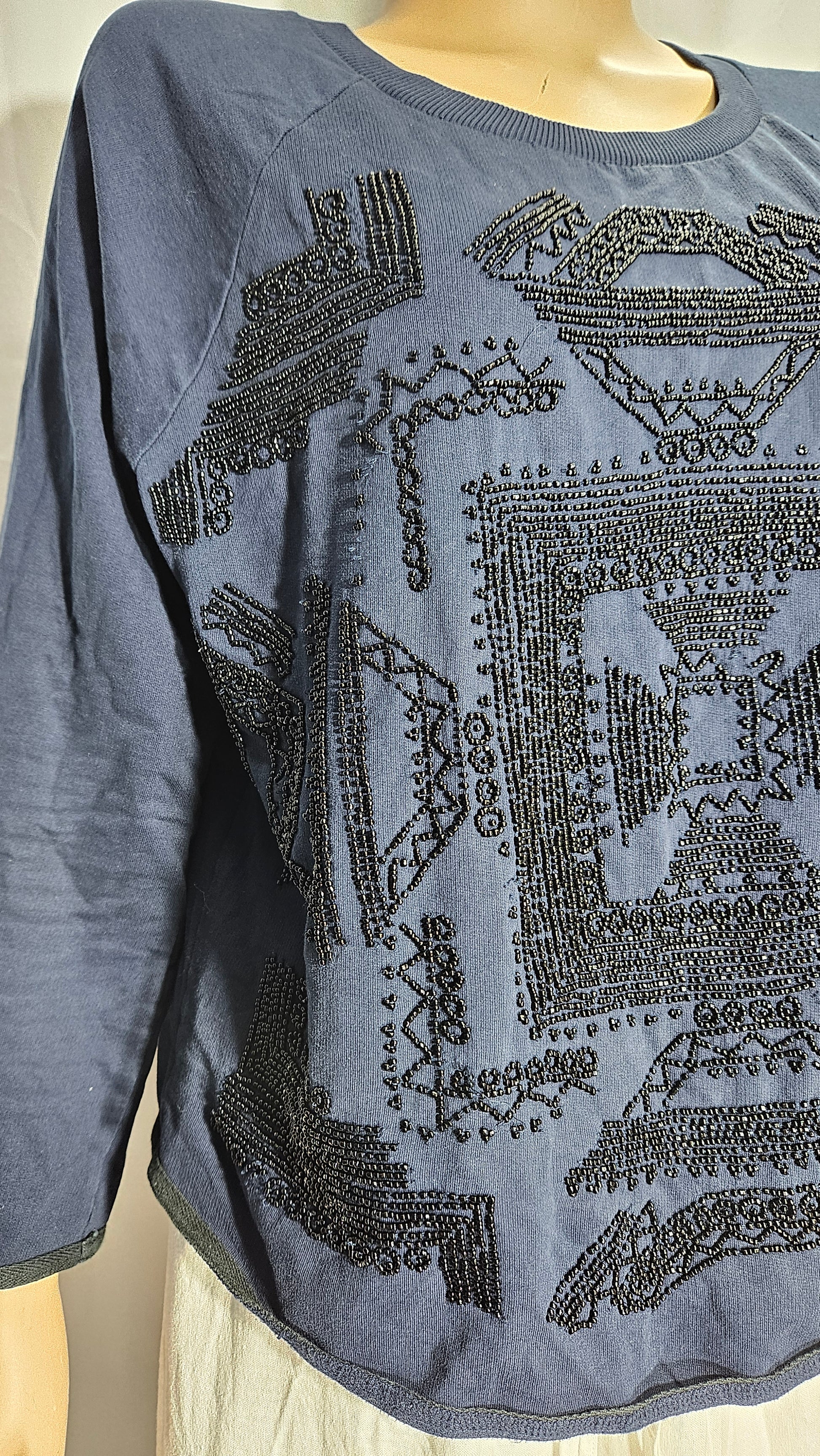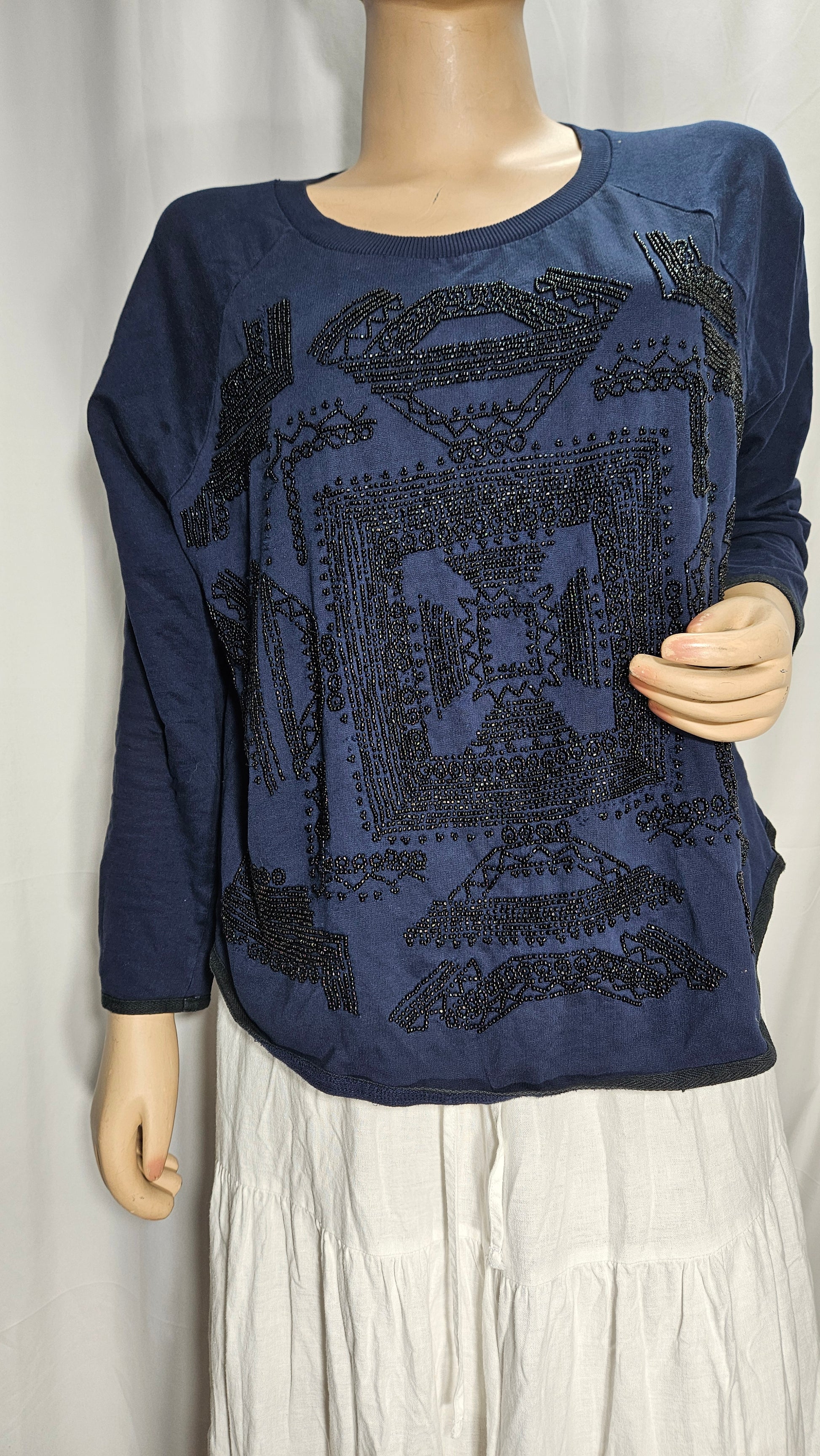 Some signs of wear, some missing beads, and slight pulls as shown in the photos. It's in good preloved condition and ready to become a standout addition to your wardrobe.