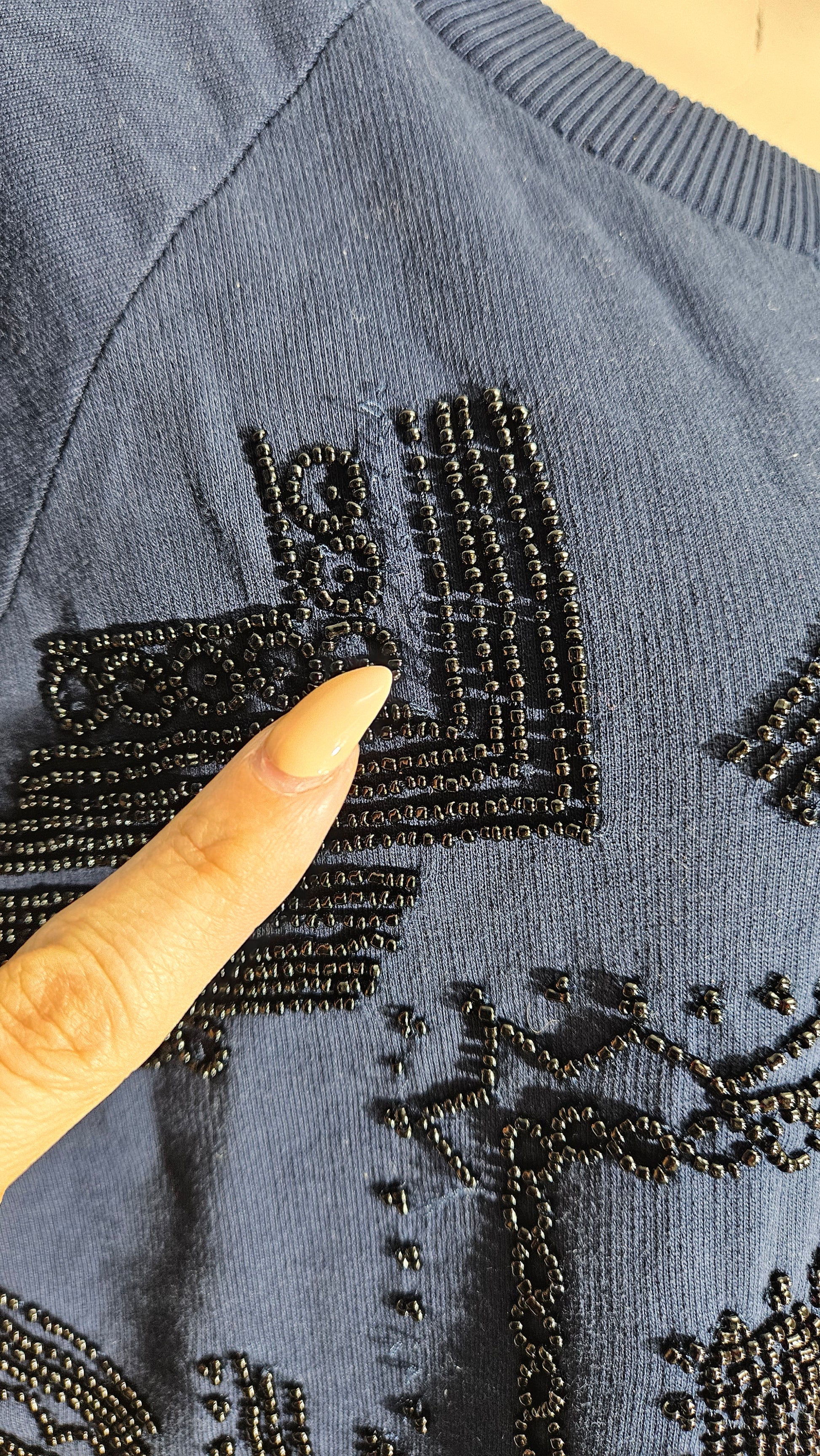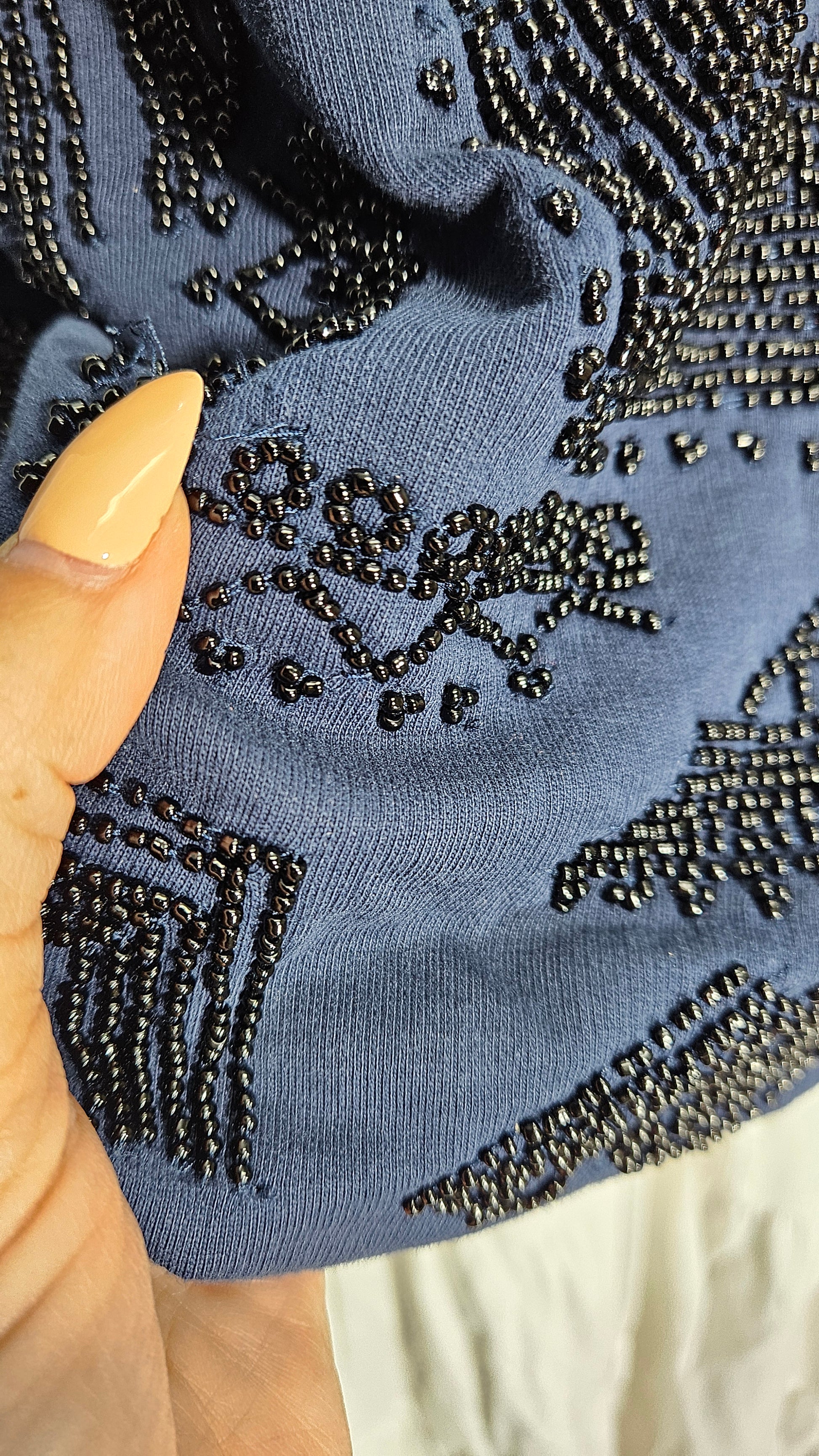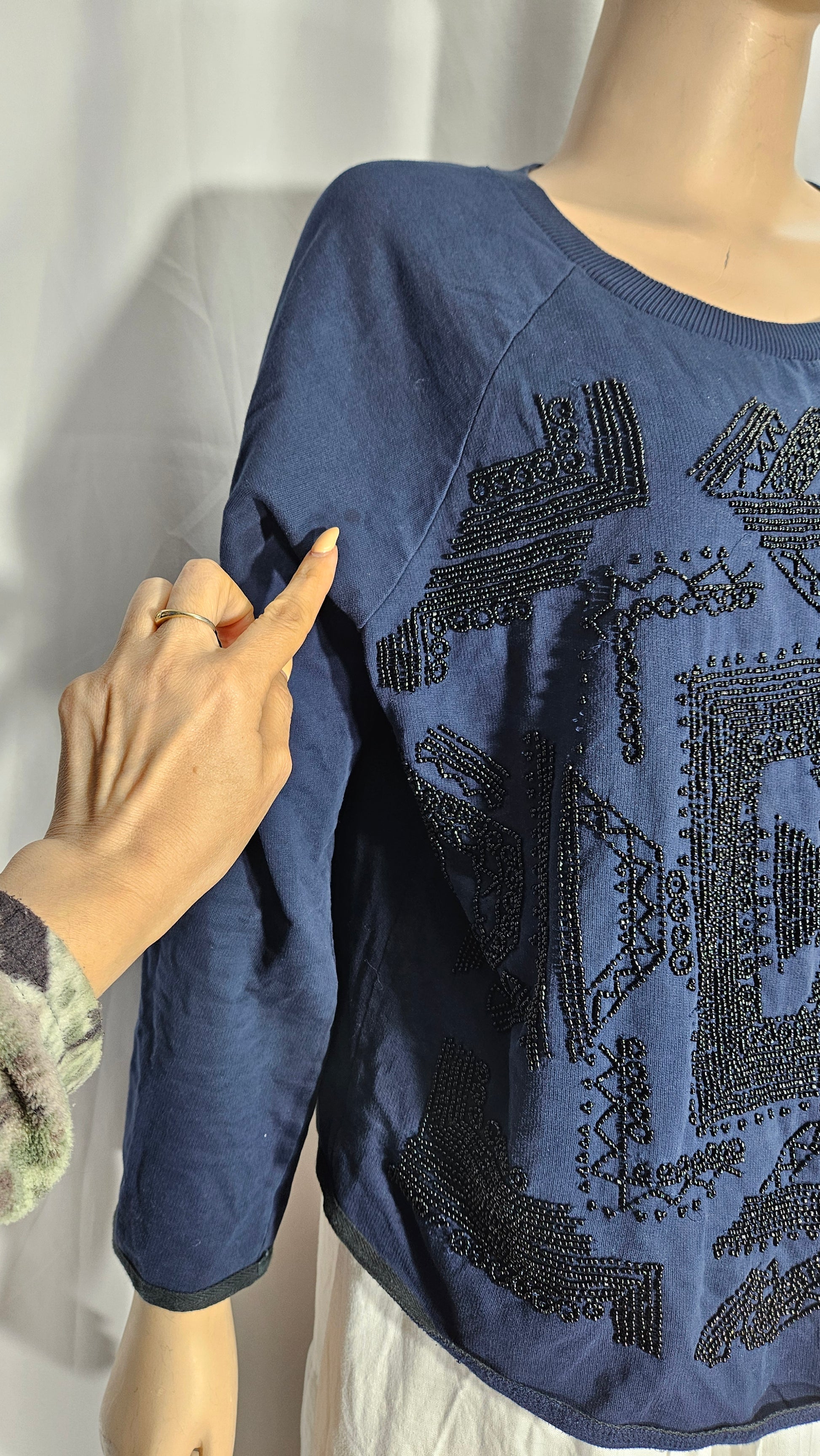 Some signs of wear, some missing beads, and slight pulls as shown in the photos. It's in good preloved condition and ready to become a standout addition to your wardrobe.