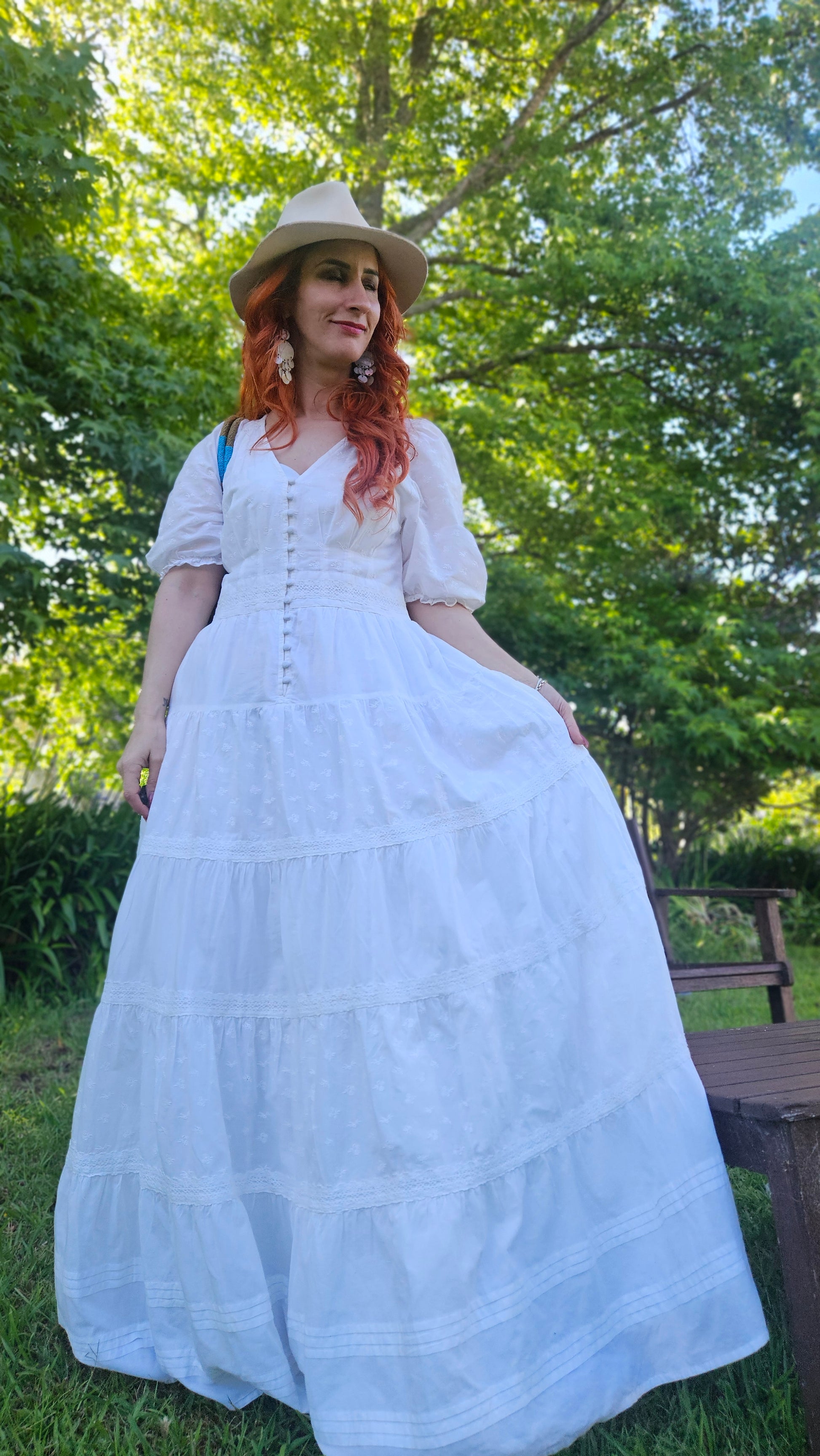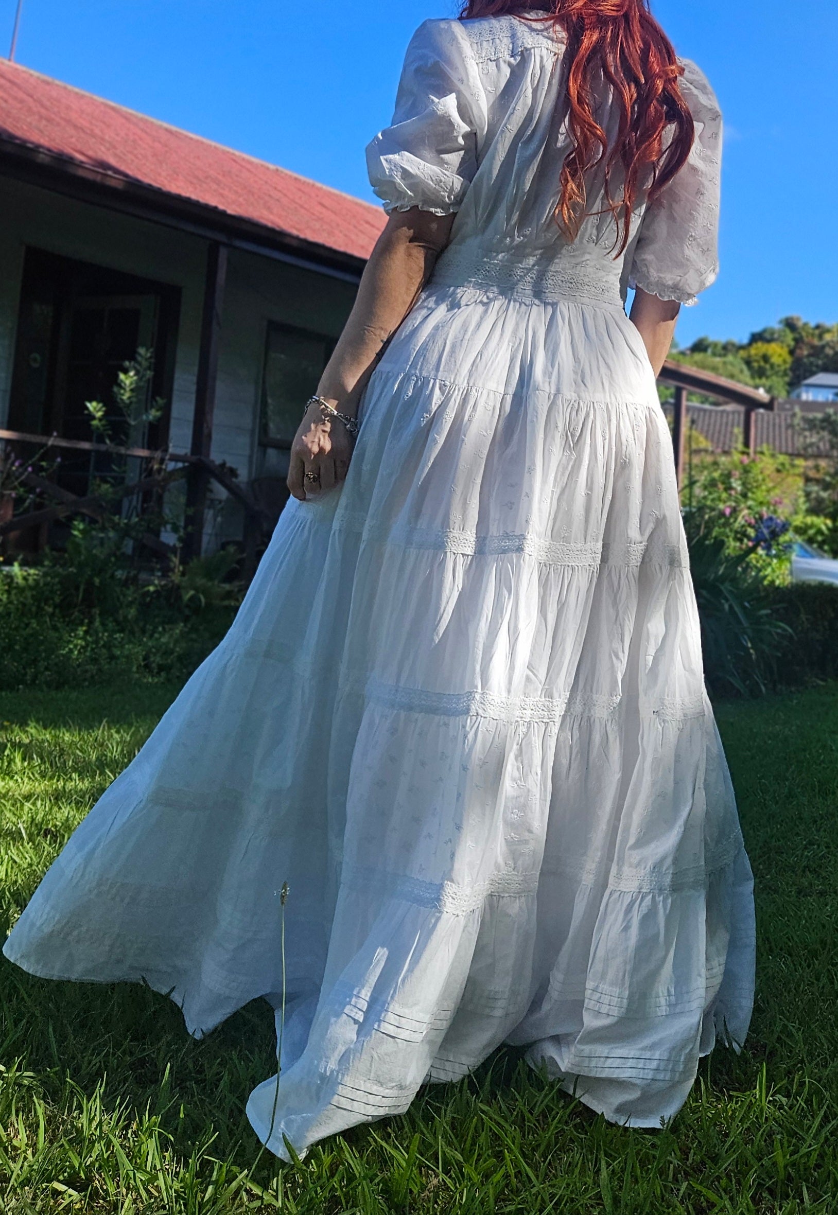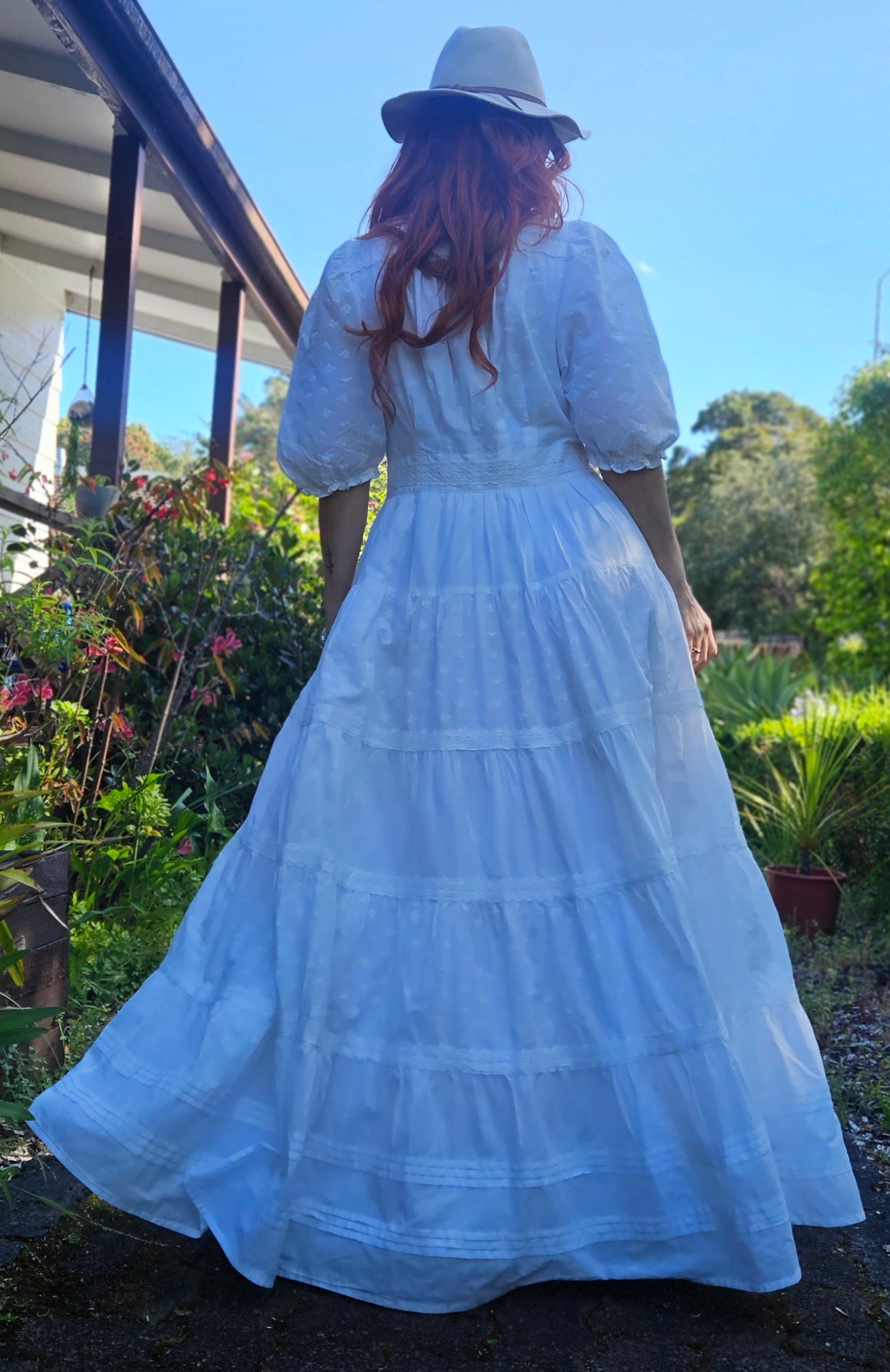 Timeless and refined, the White tier Dress by Newie is crafted from organic cotton and features a beautifully tiered silhouette with multiple panels, creating a full, circular flare that moves gracefully with you. With beautiful puff sleeves, Intricate button up style and delicate lace details elevate the design.
