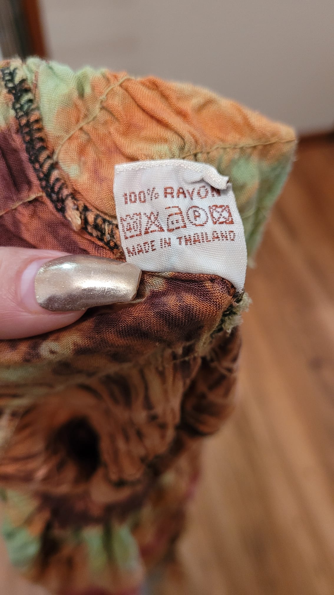 Experience the vibrant charm of this Bohemian Colorful Unisex Shalwar Summer Tracksuit Pants! These baggy-style pants are the perfect addition to your summer and spring wardrobe. Crafted with care in Thailand, they're made from 100% rayon and feature the iconic Patan design. Embrace the bohemian spirit while shopping sustainably at our Second Hand Store.