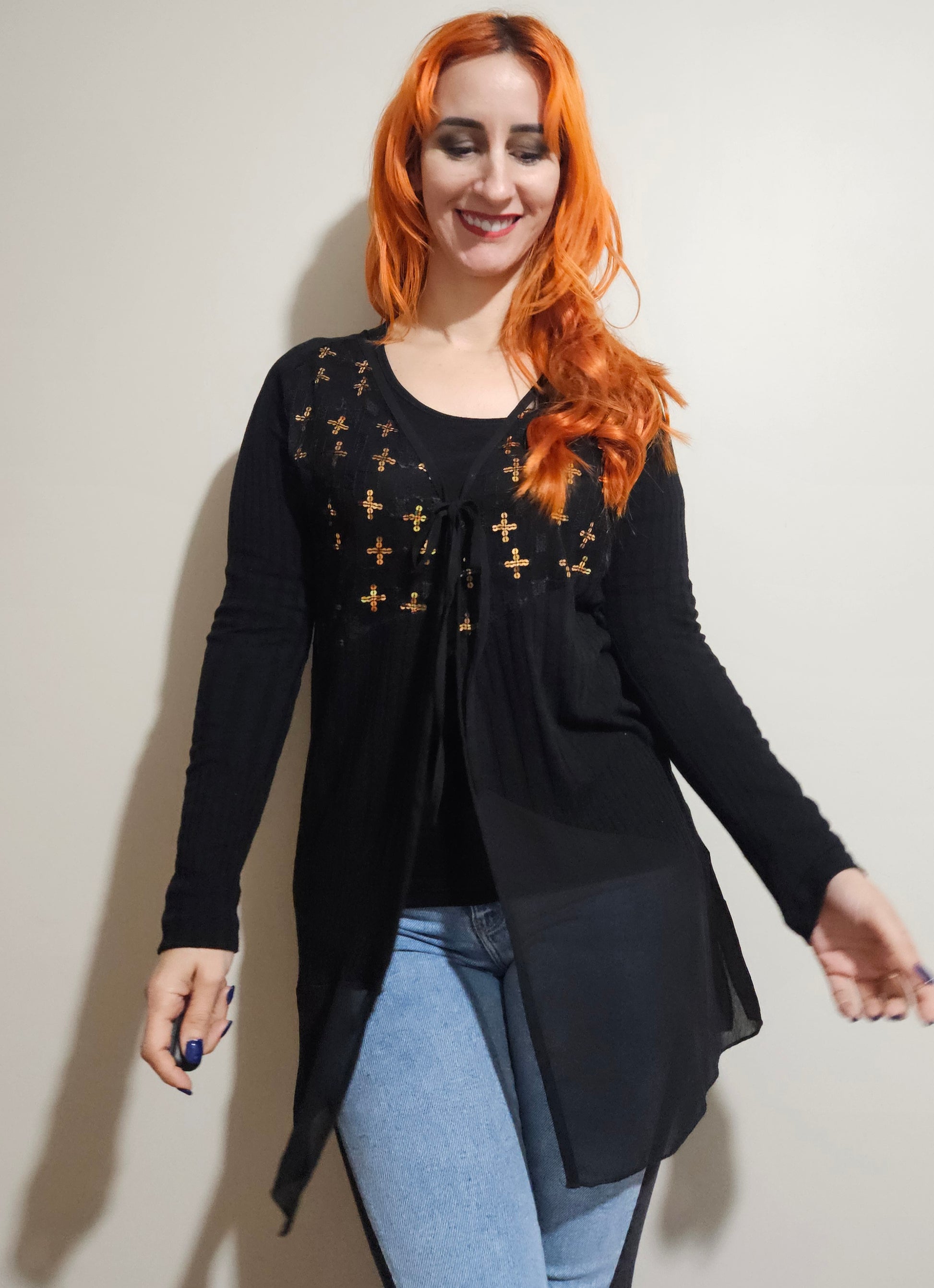This versatile Cardi effortlessly combines fashion and function. Slip it on to make a statement and stay cozy while looking chic. Don't miss out on this unique find in our online second-hand store collection.