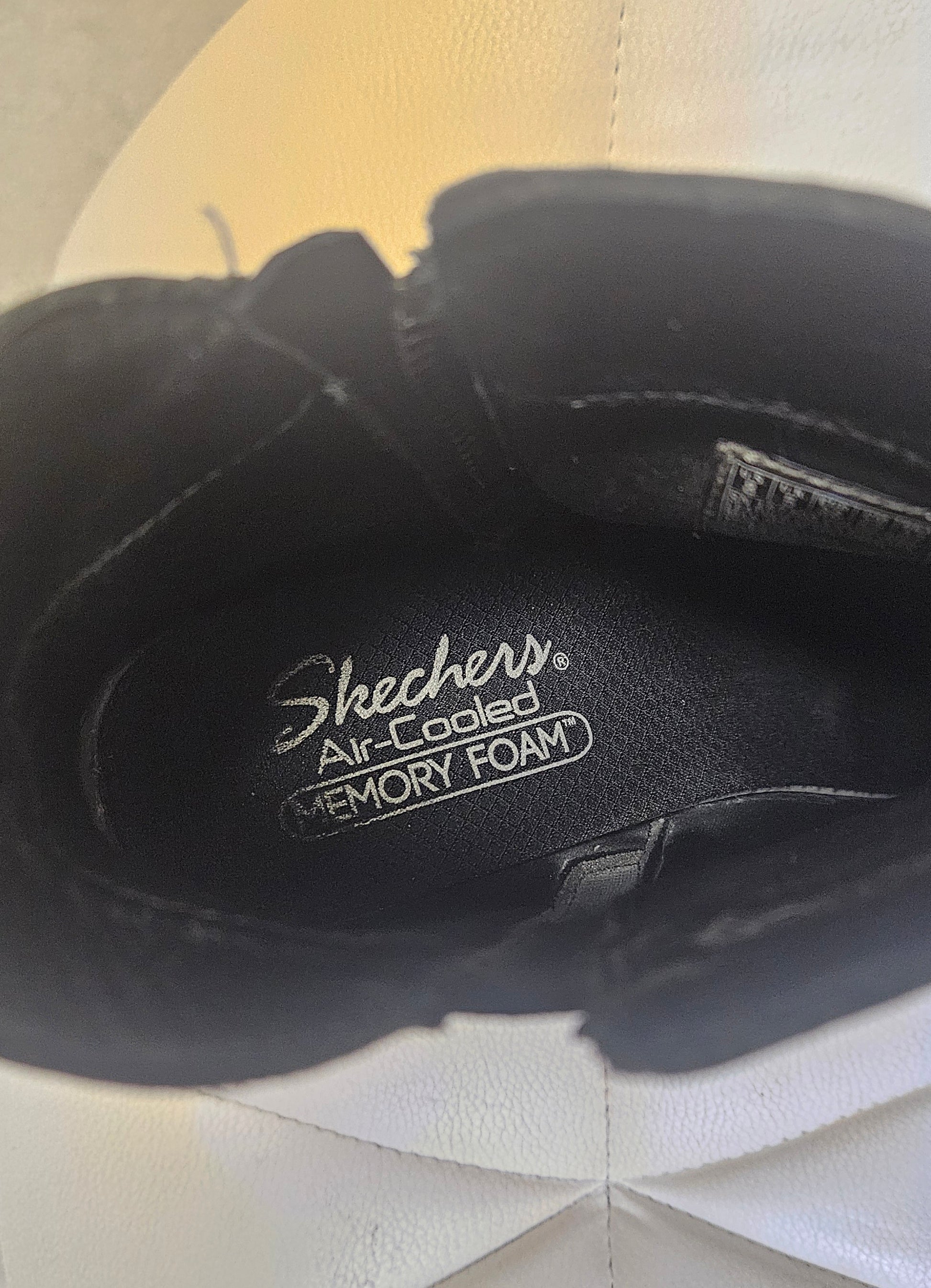 Beautiful black ankle boots from Skecheers, featuring a stylish elegant leather and confortable. Designed with a block high heel and side zipper, these boots are perfect for adding a unique touch to your autumn or winter outfits.