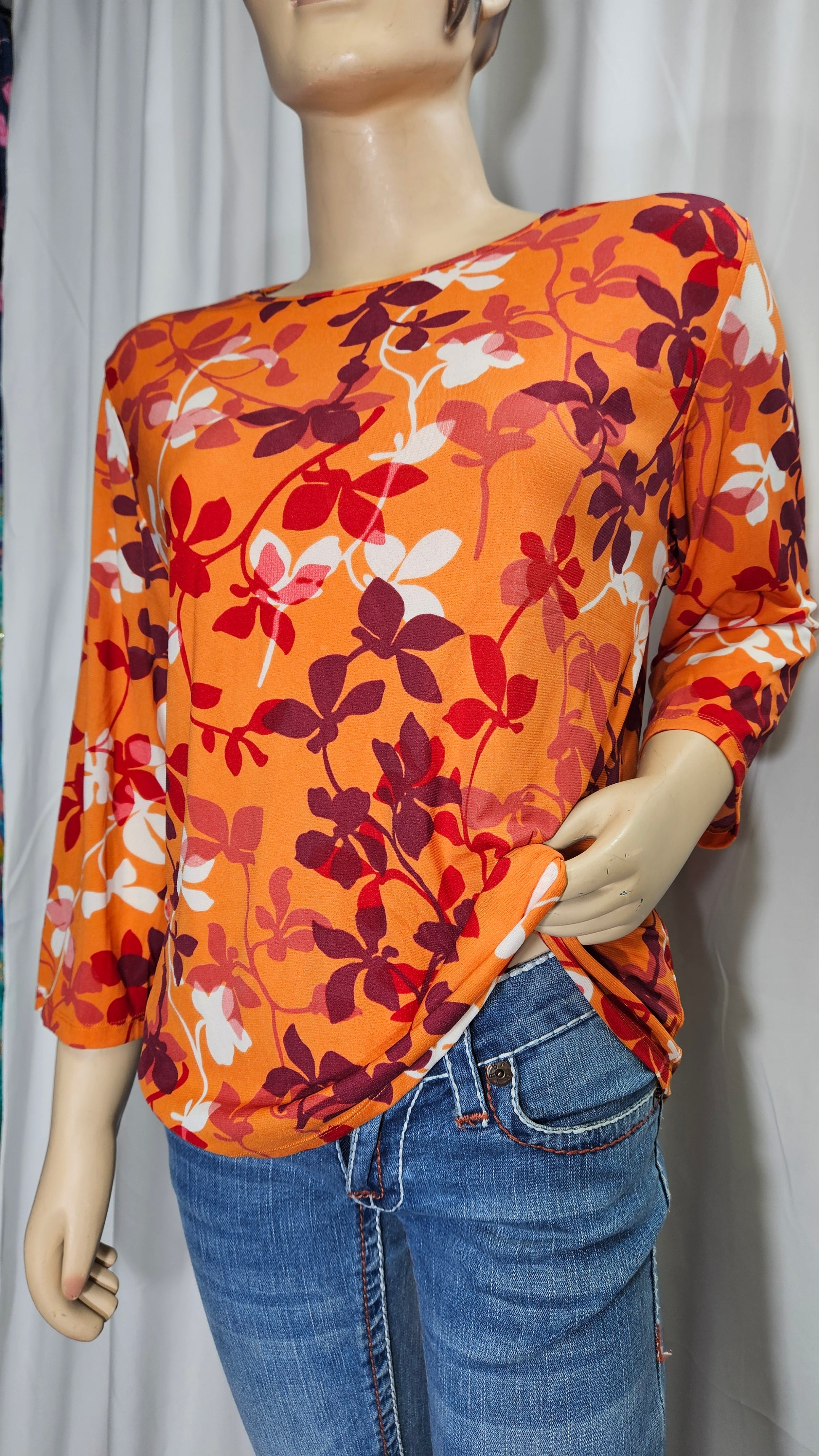 Floral Blouse - Second Hand 3/4 sleeve top - boho blouse