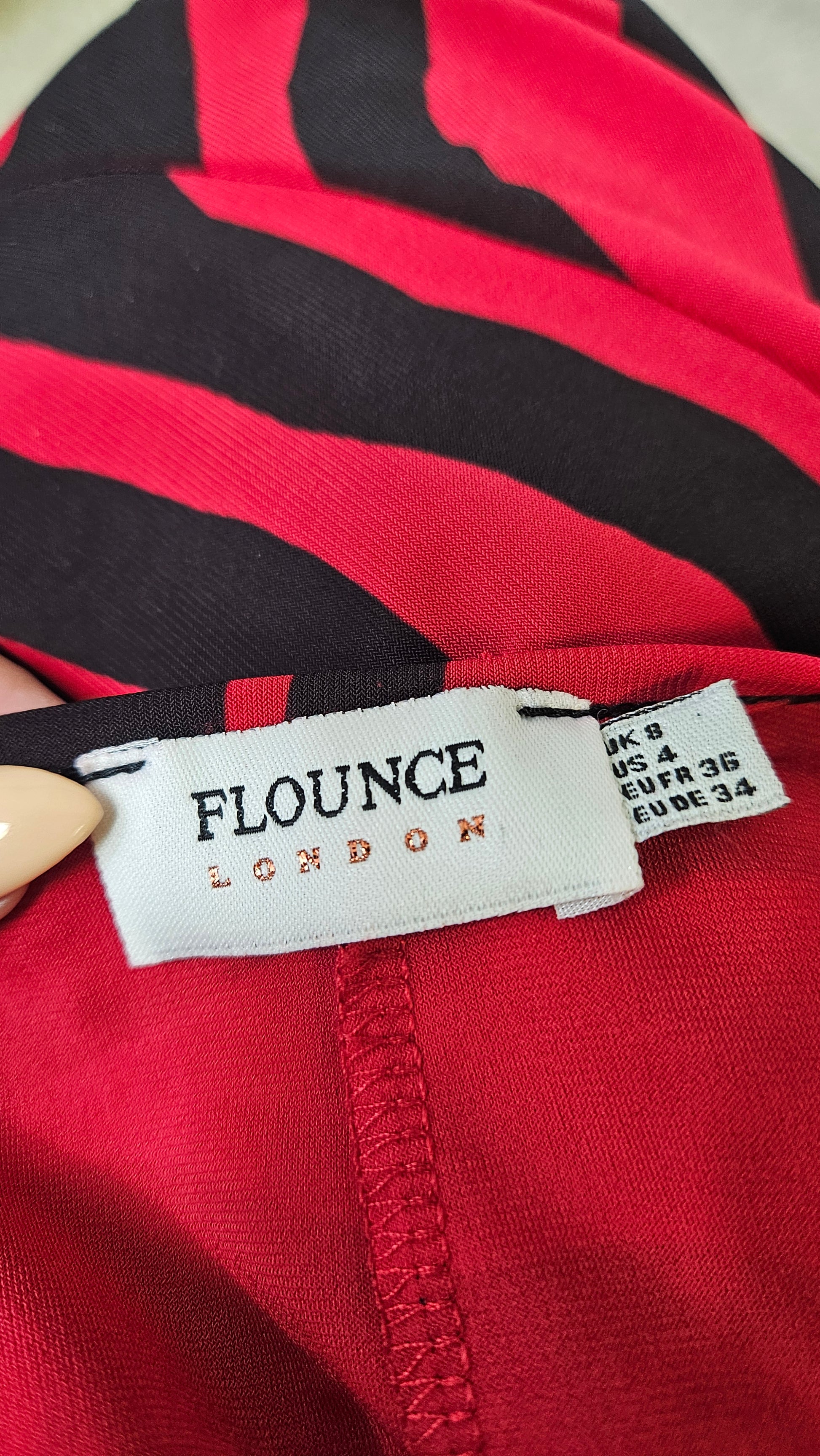 `Flounce London’ Red & Black Animal Print Dress- Preloved wrap Dress Size 8