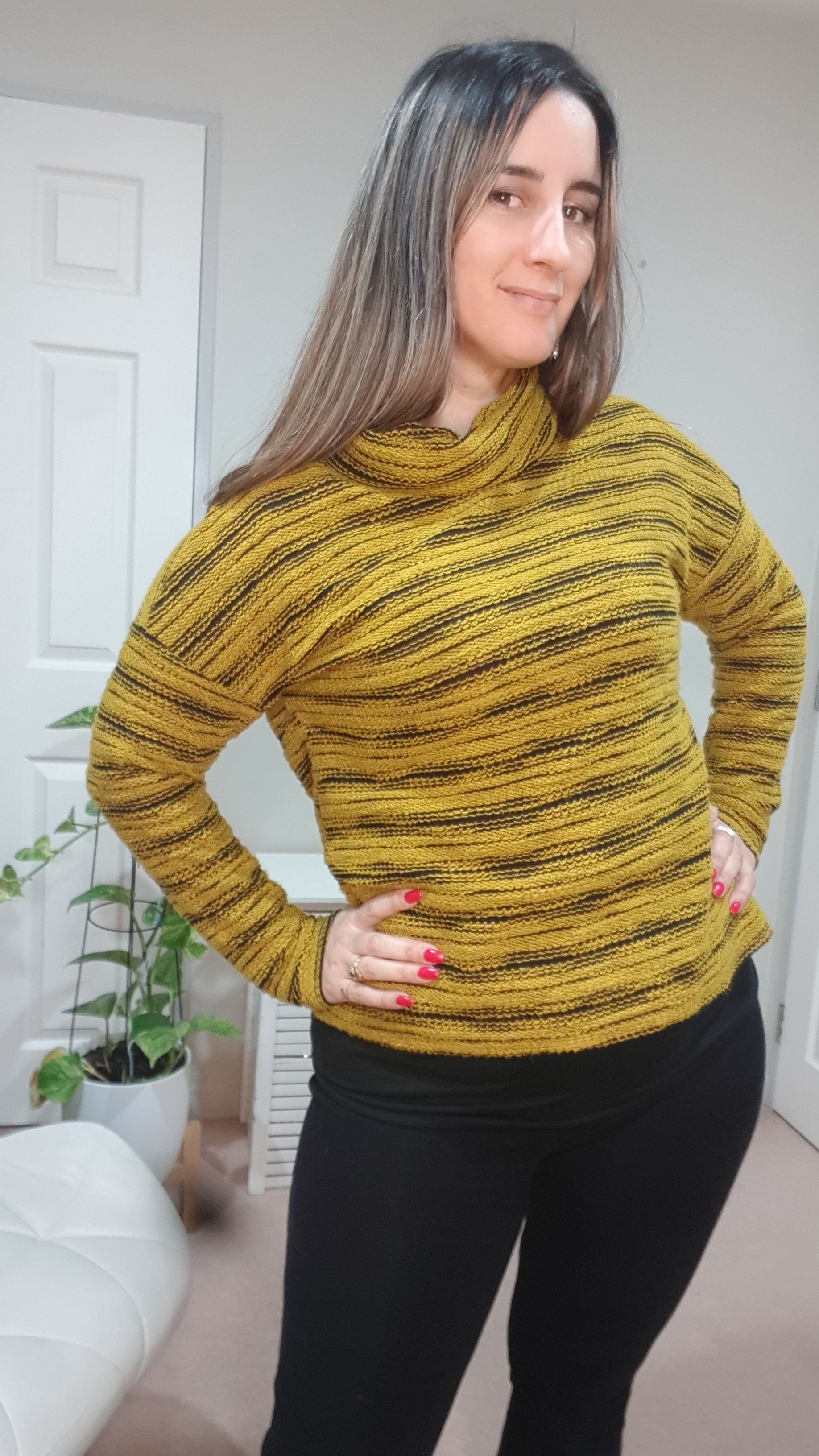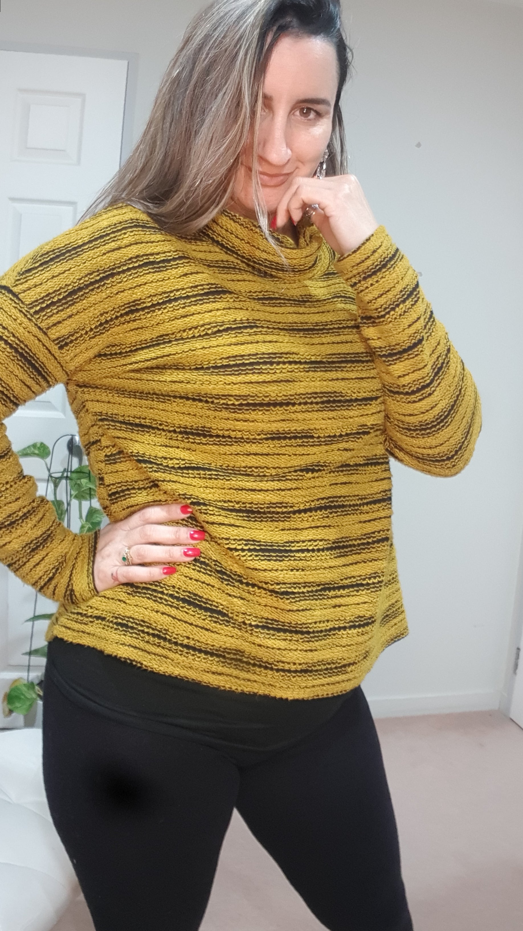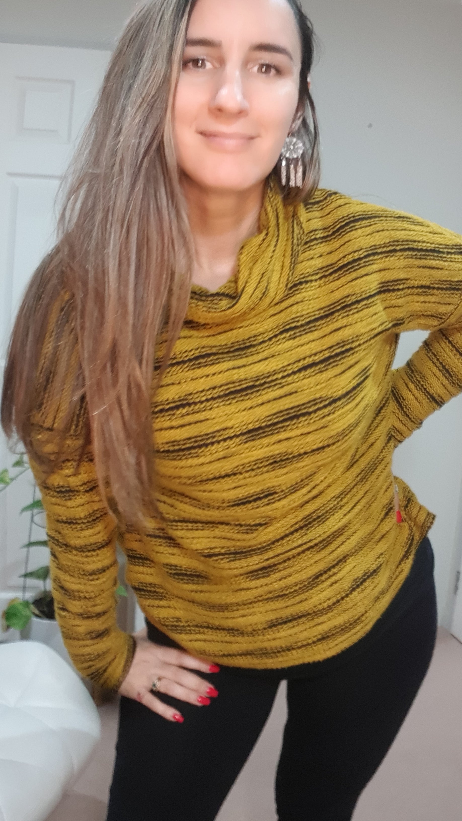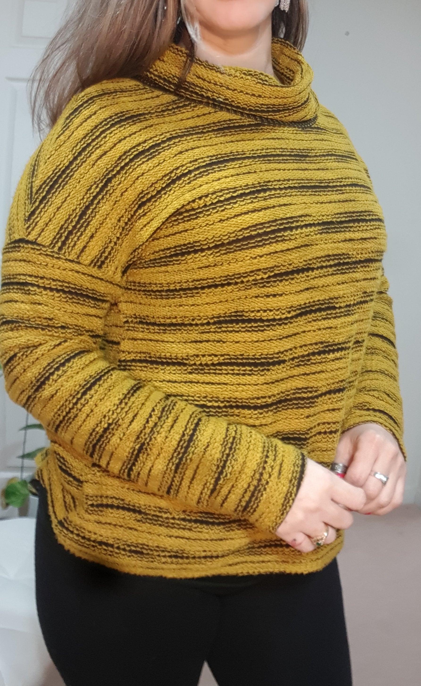Super cool casual drop shoulders, turtleneck sweater in good preloved condition. Designed in USA. Tags shows a XS size, however I would say it is more like a small - medium size in my opinion.