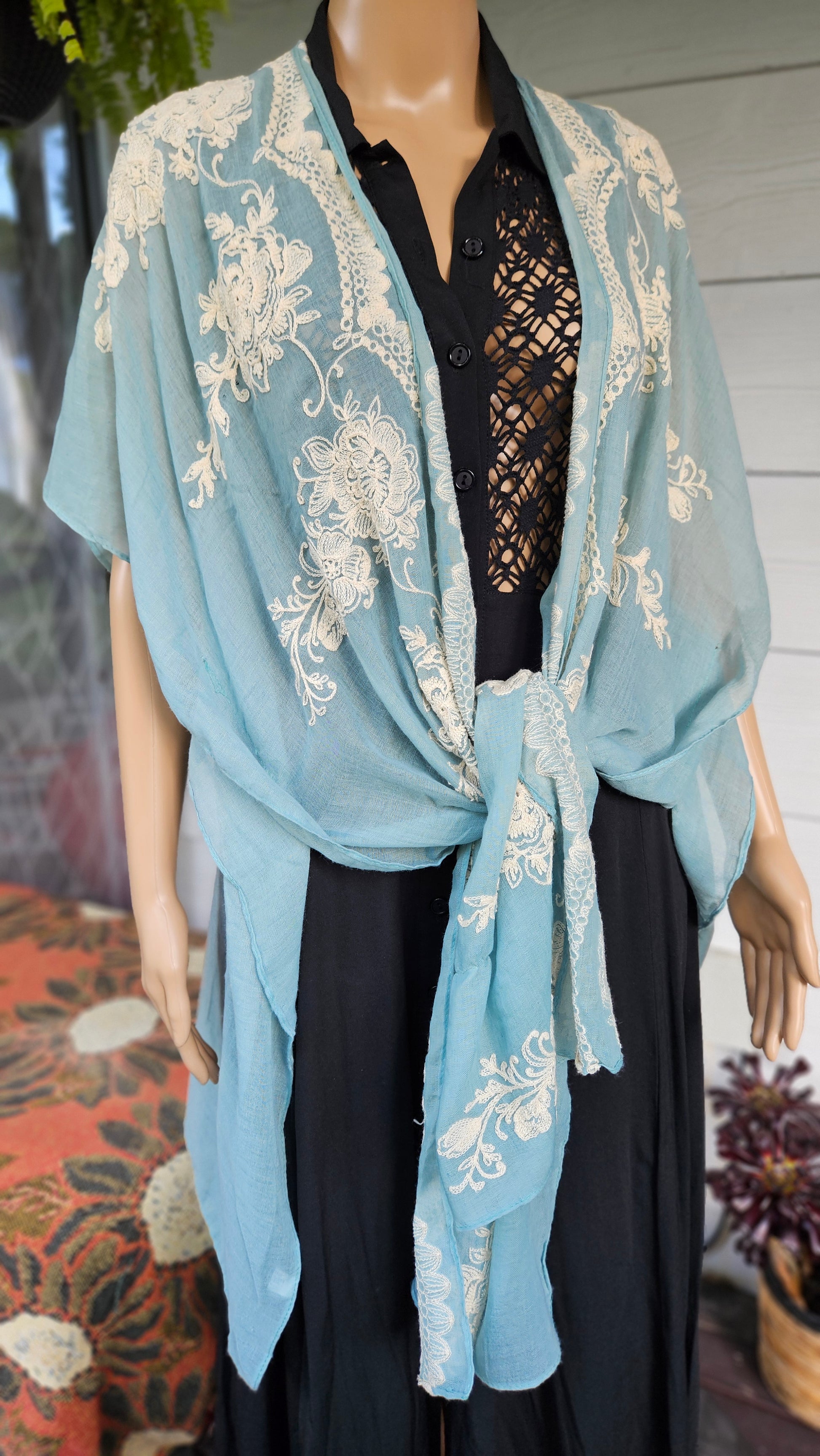 This Embroidered Duster features beautiful embroidery detail and lightweight fabric that is so comfortable & airy. Generously oversized; one size fits most