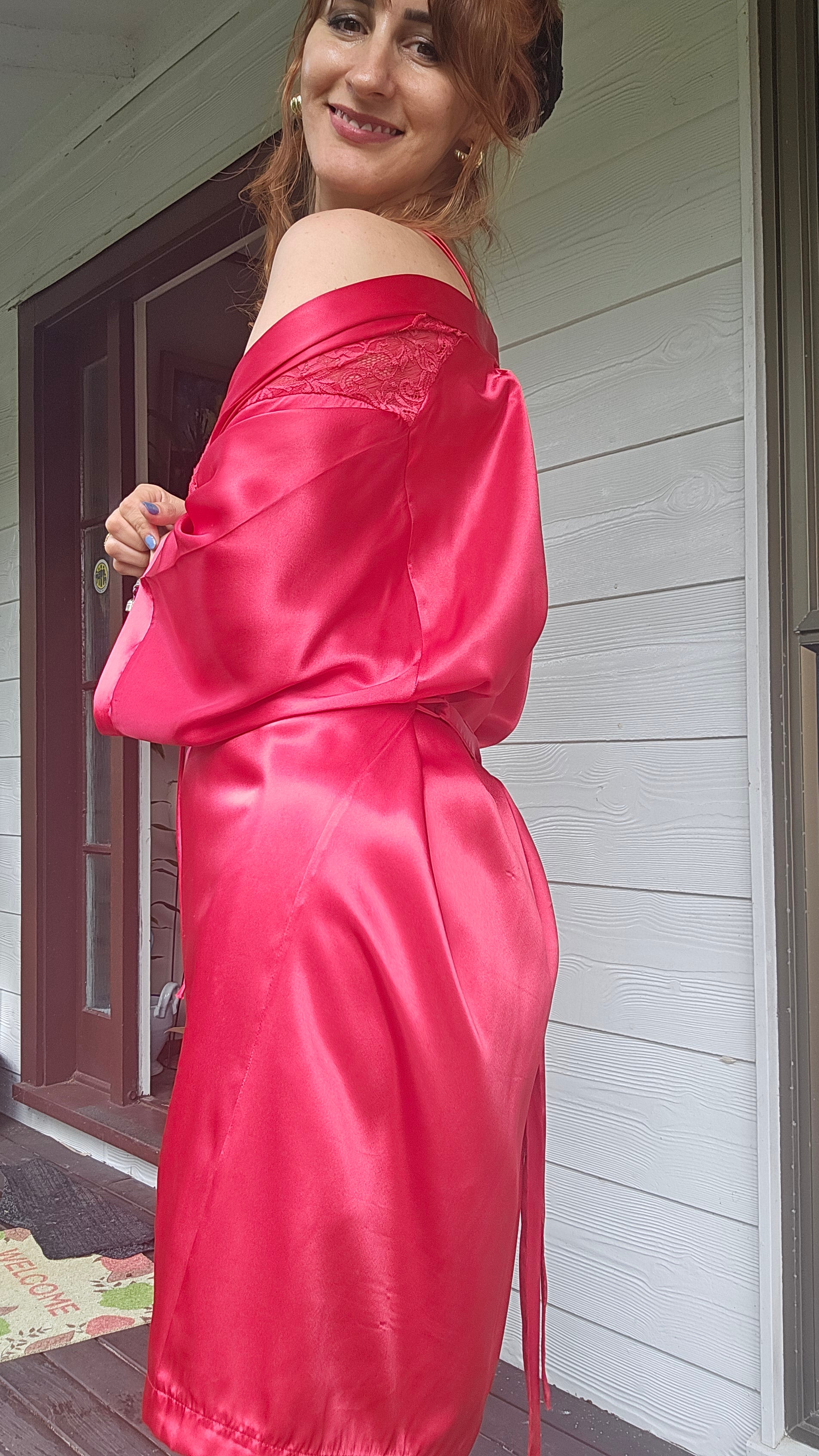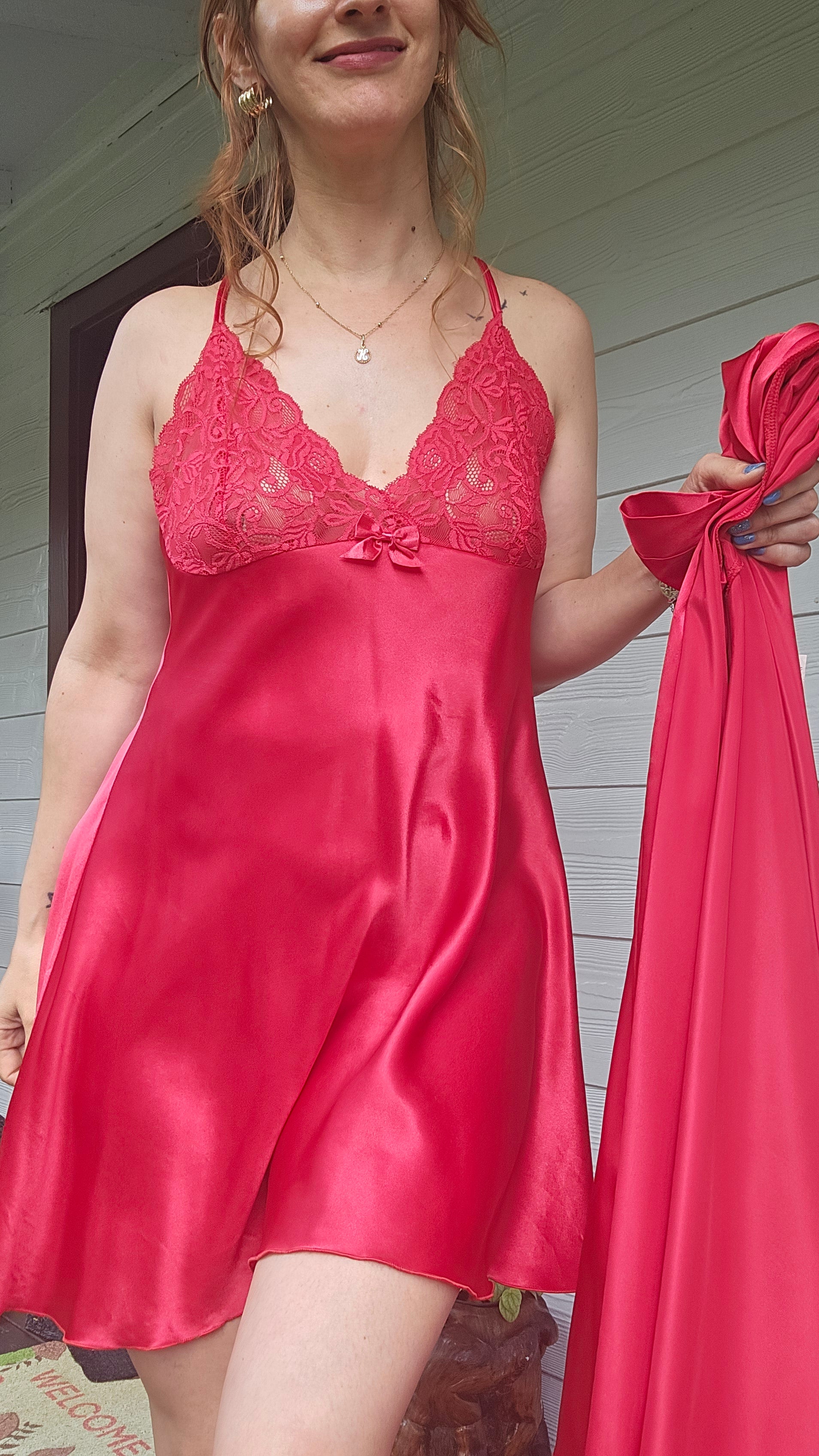 Gorgeous Red Satin Lingerie Set - Nightgown & Matching Robe Size 14.