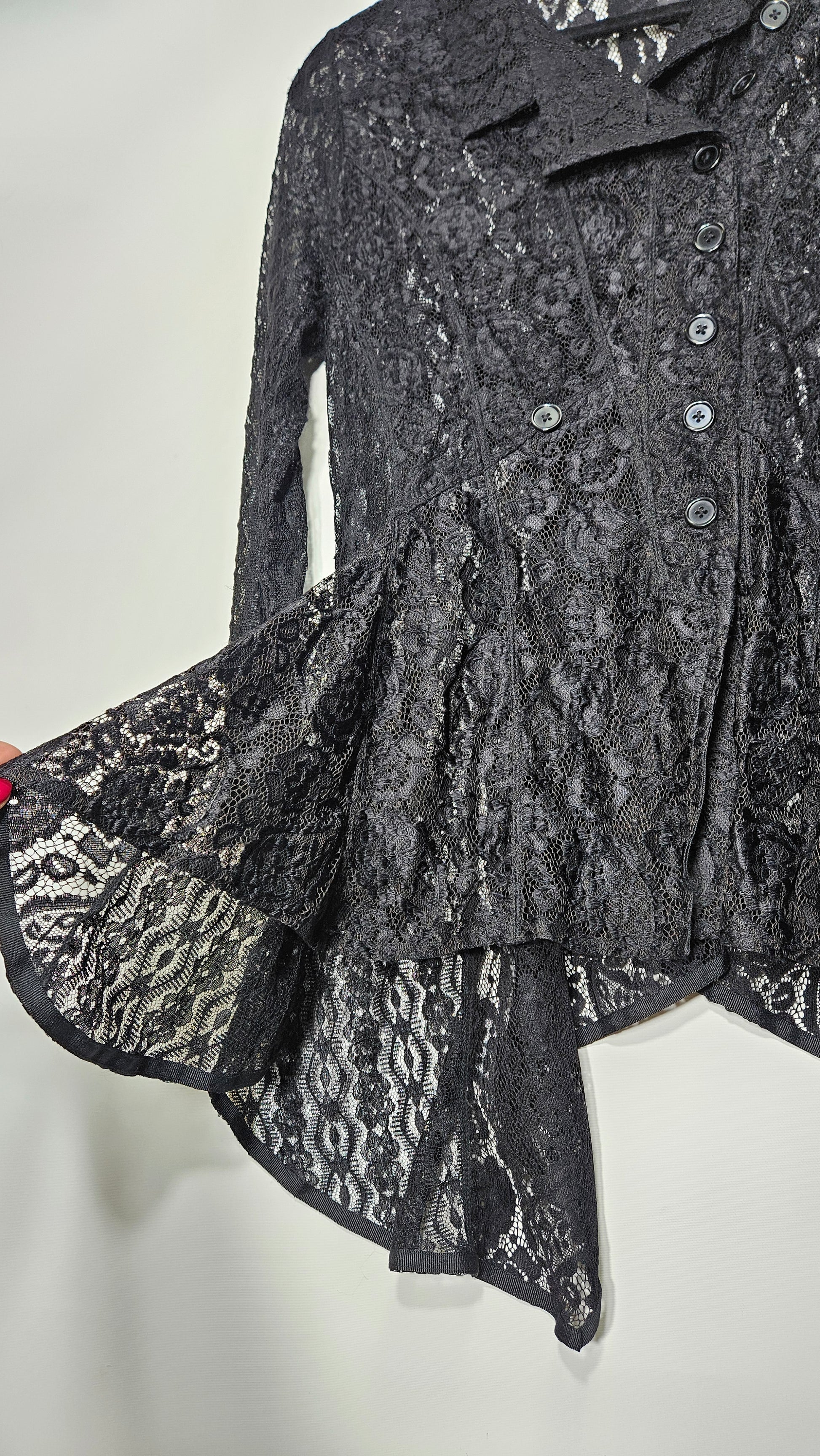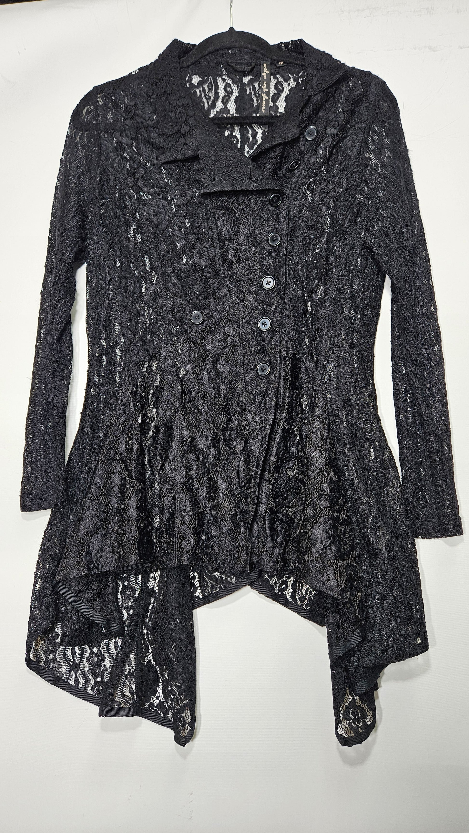 UNIQUE black lace Top - Asymmetrical coat, in size 12.
