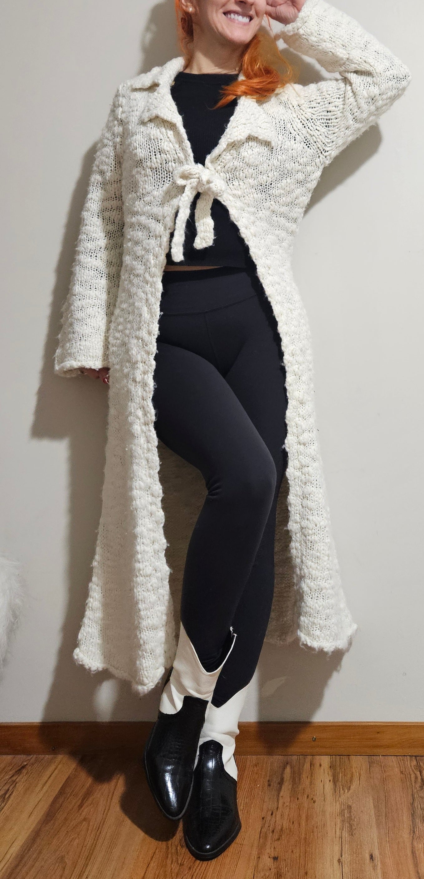 This gorgeous long cardigan is a one-of-a-kind piece you won’t find in any mainstream store.