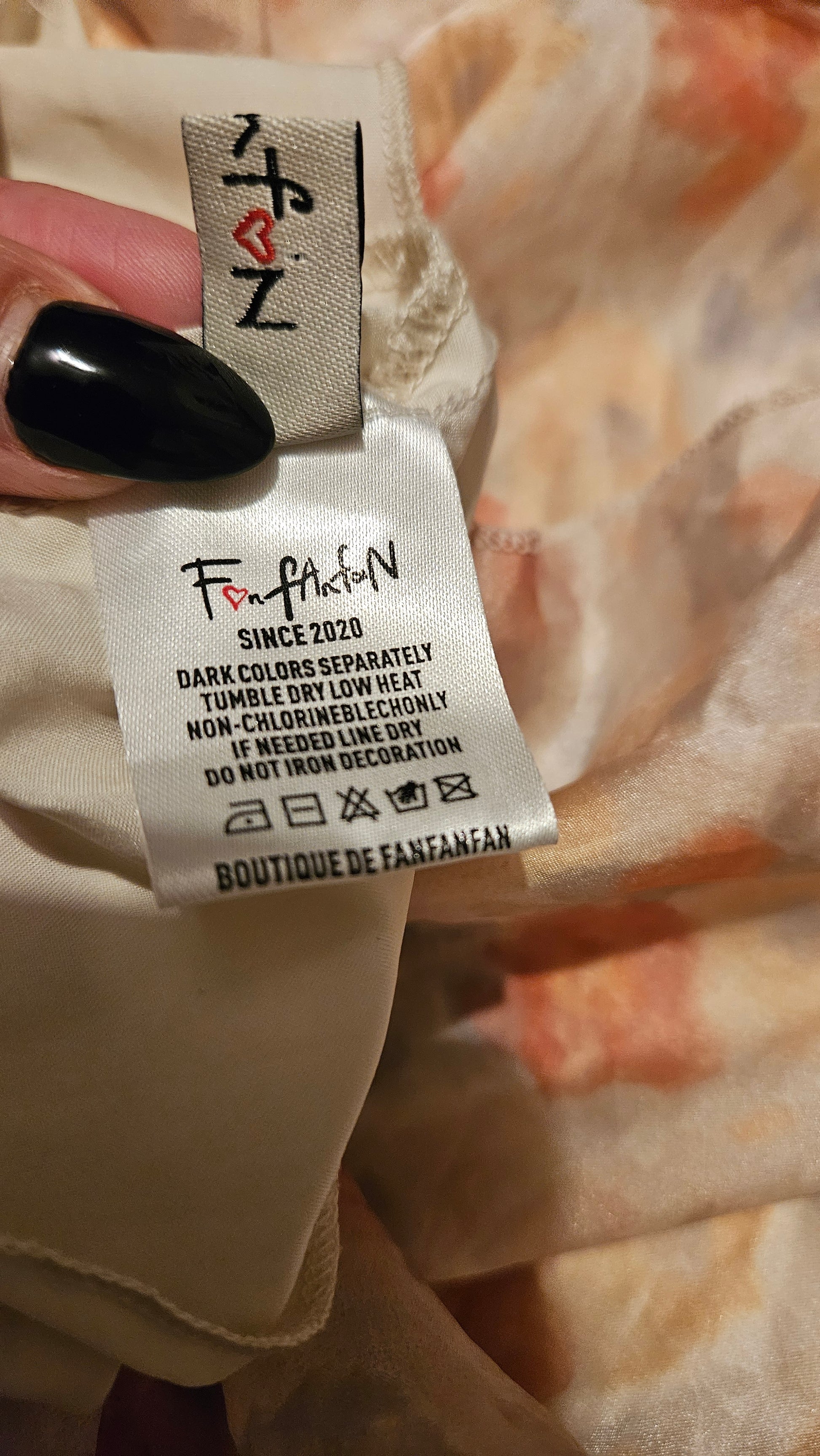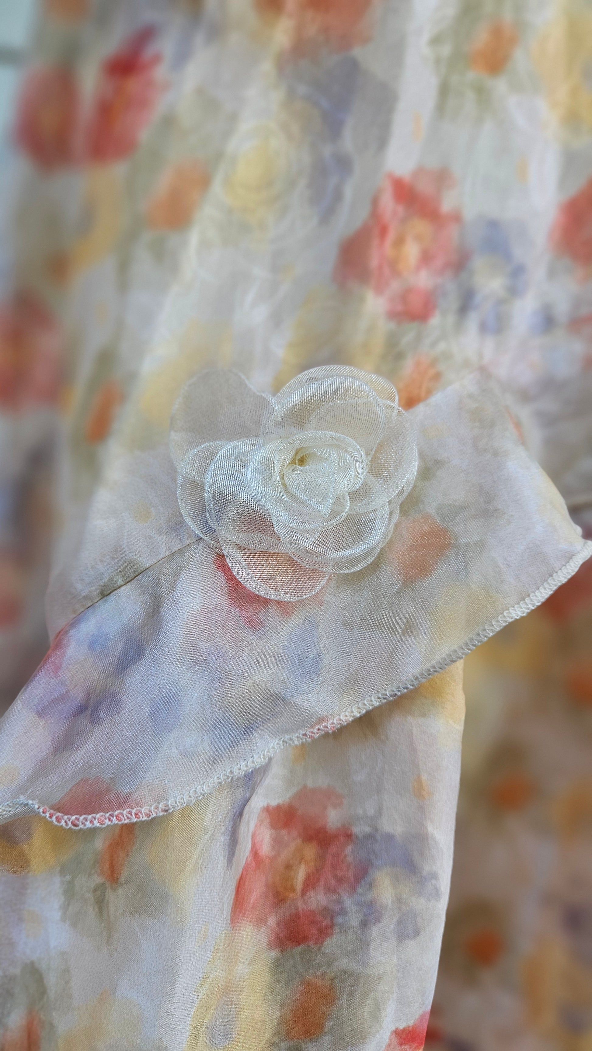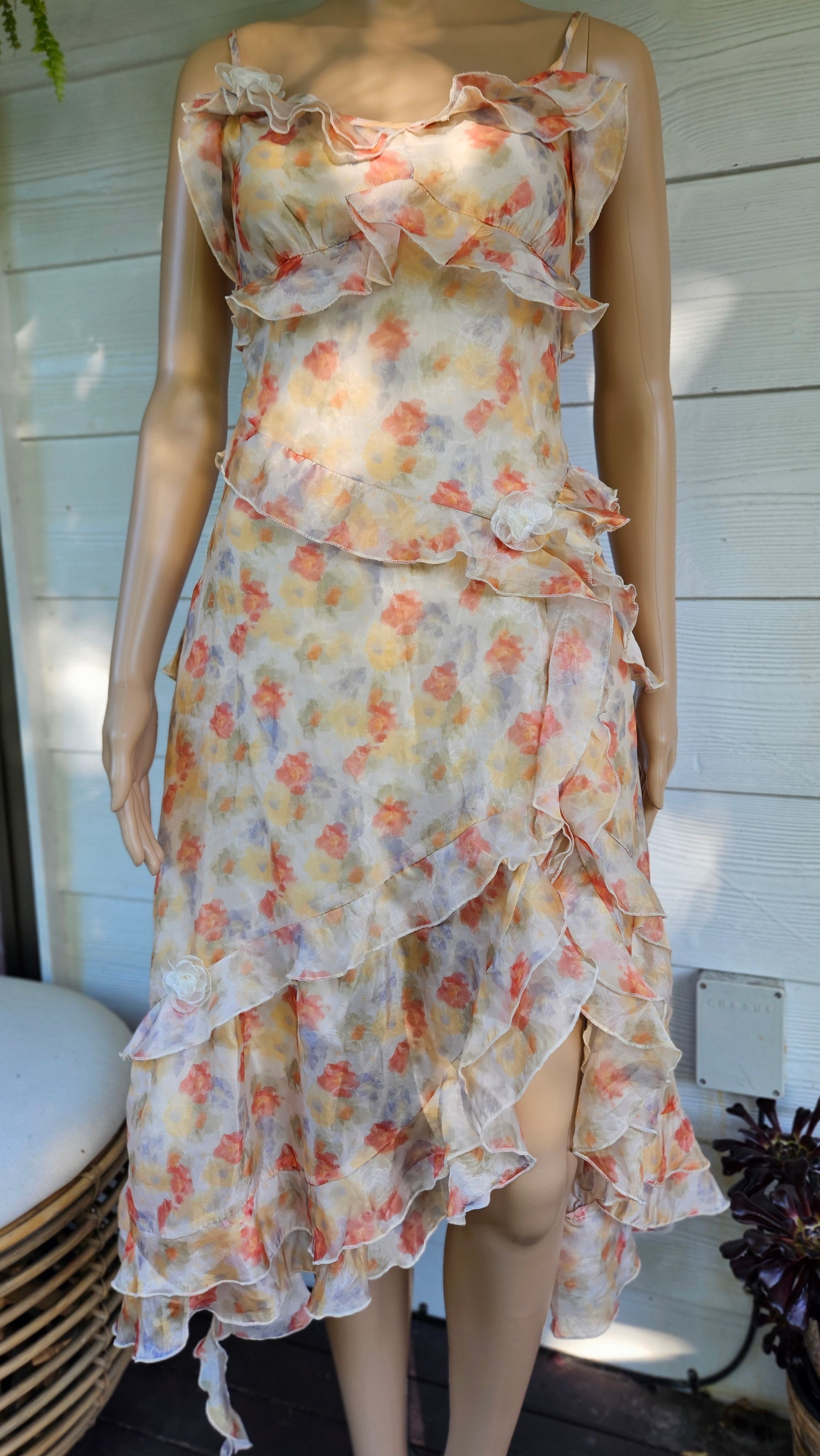 Adorable romantic Dress with floral pattern and flowers attached, so cute! in Size S. (vintage). More like a size 8 in my opinion but I think it will fit a size 6- 8 - 10. Depends on the look desired.