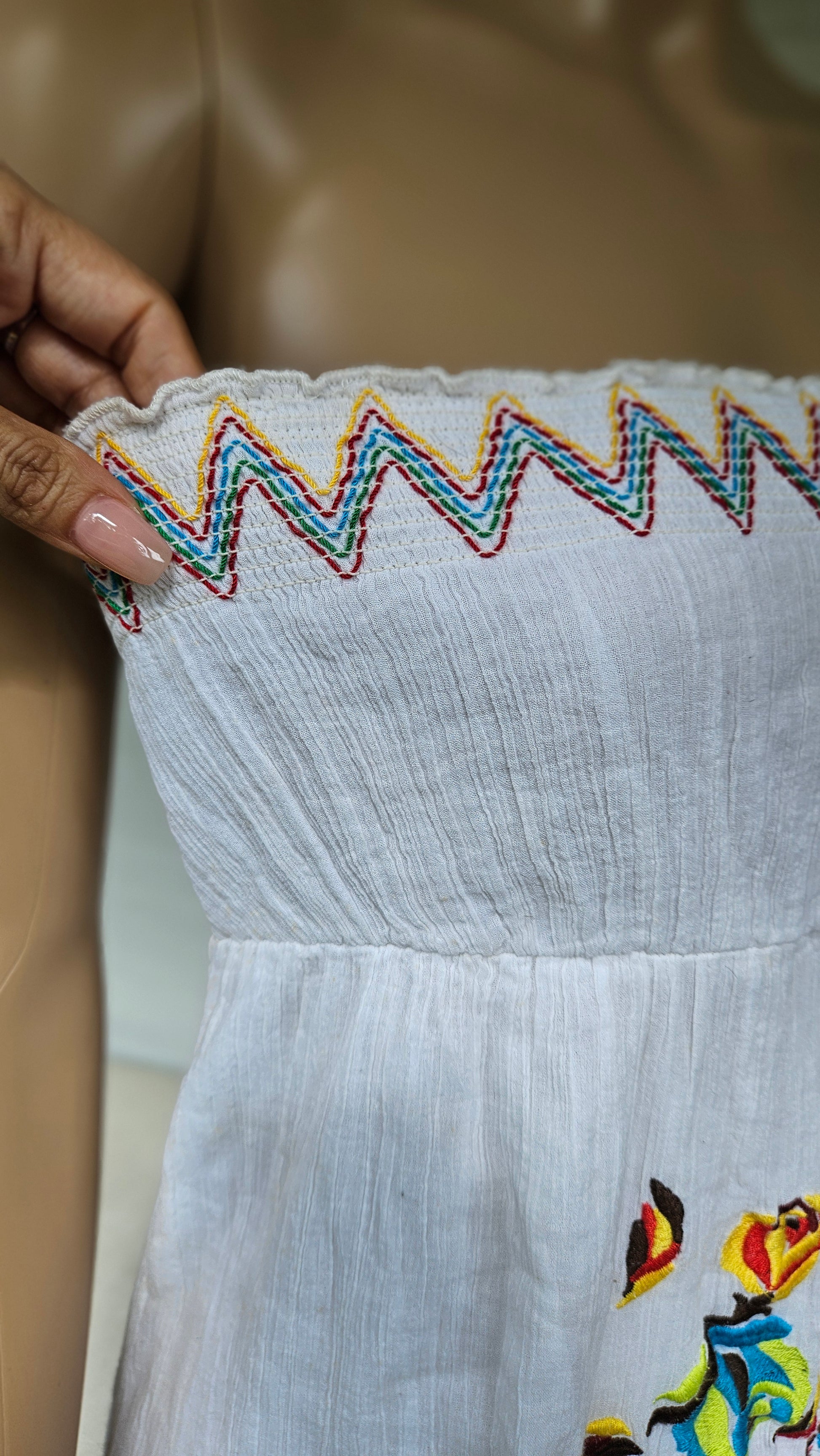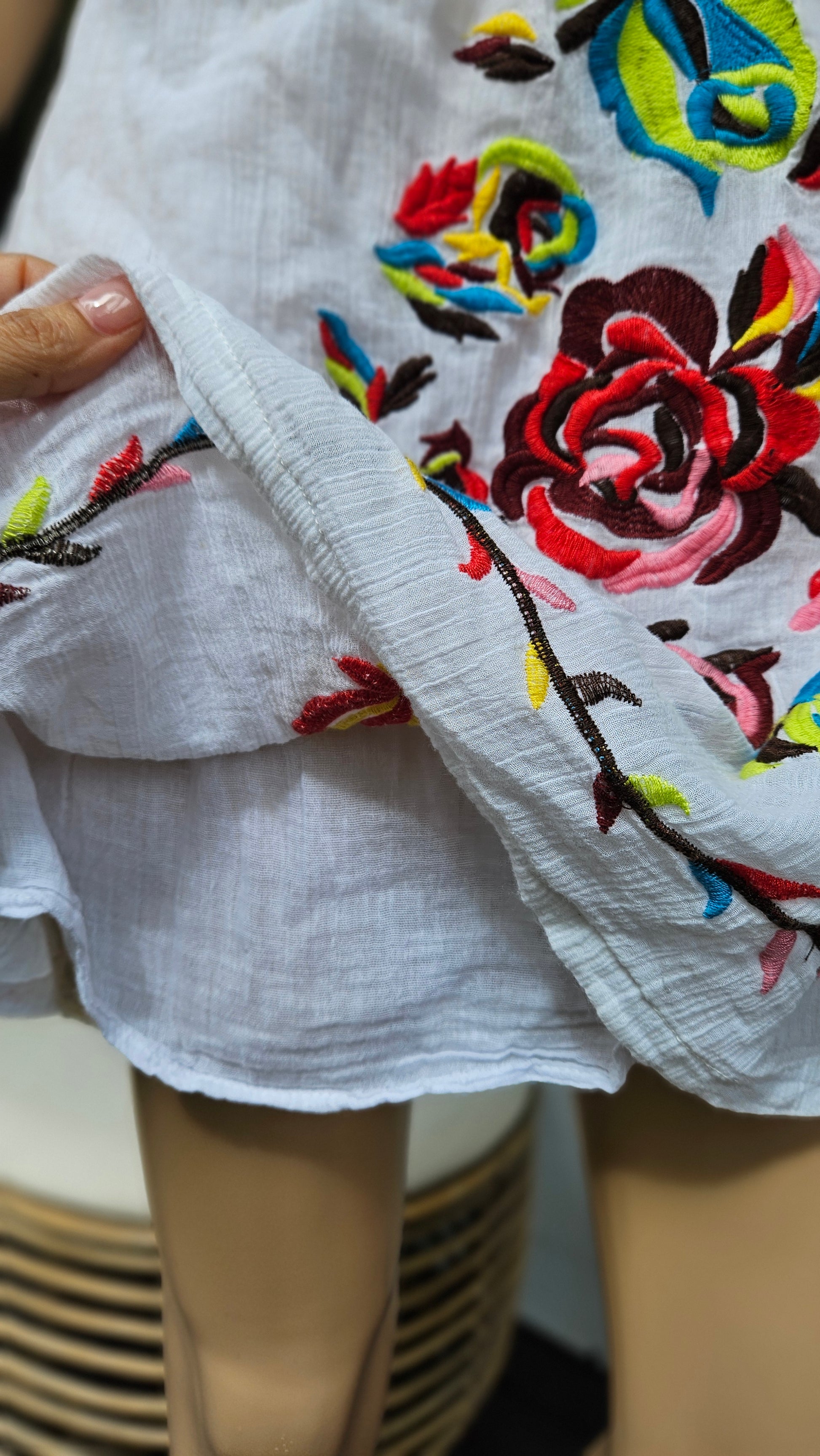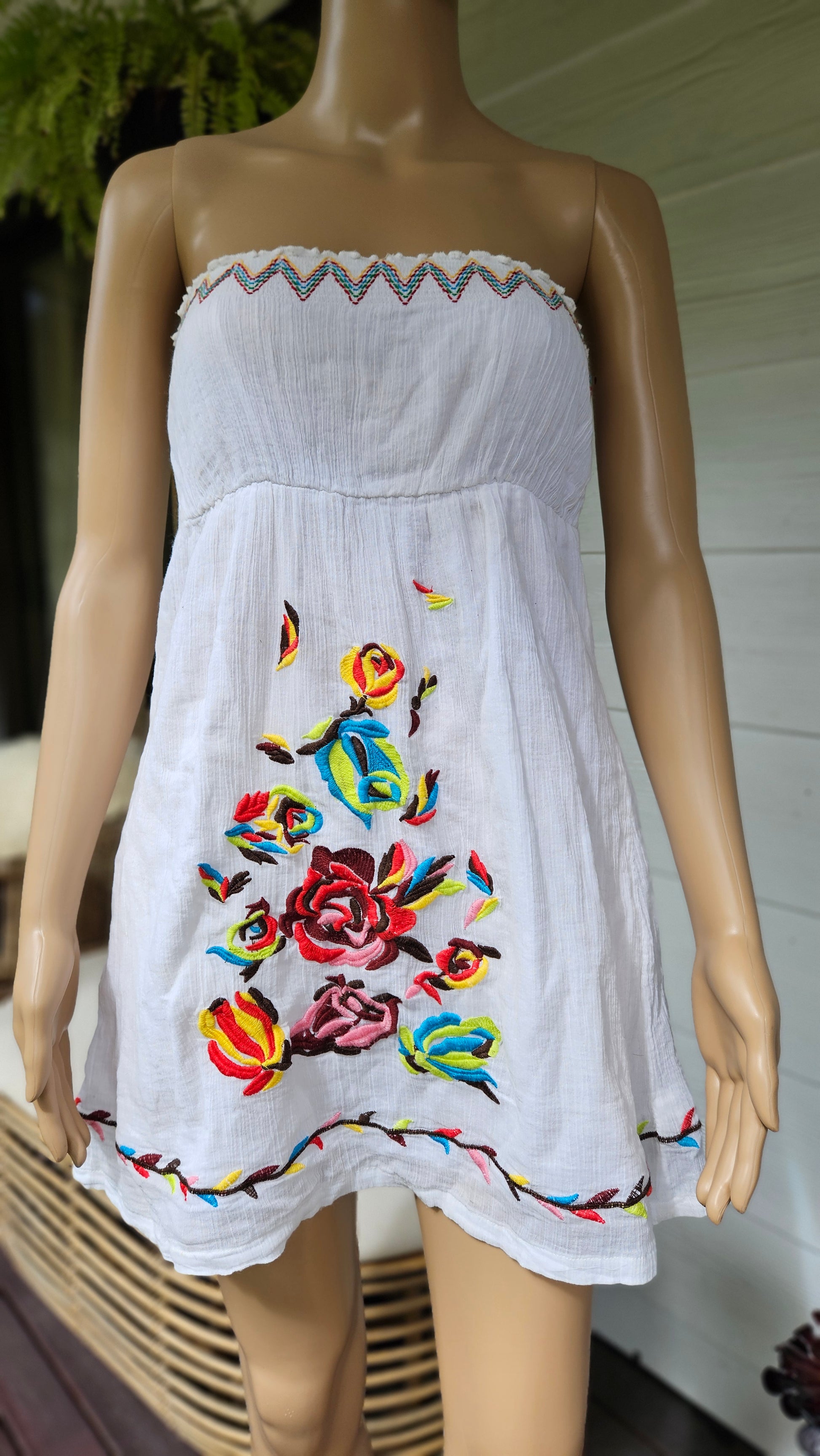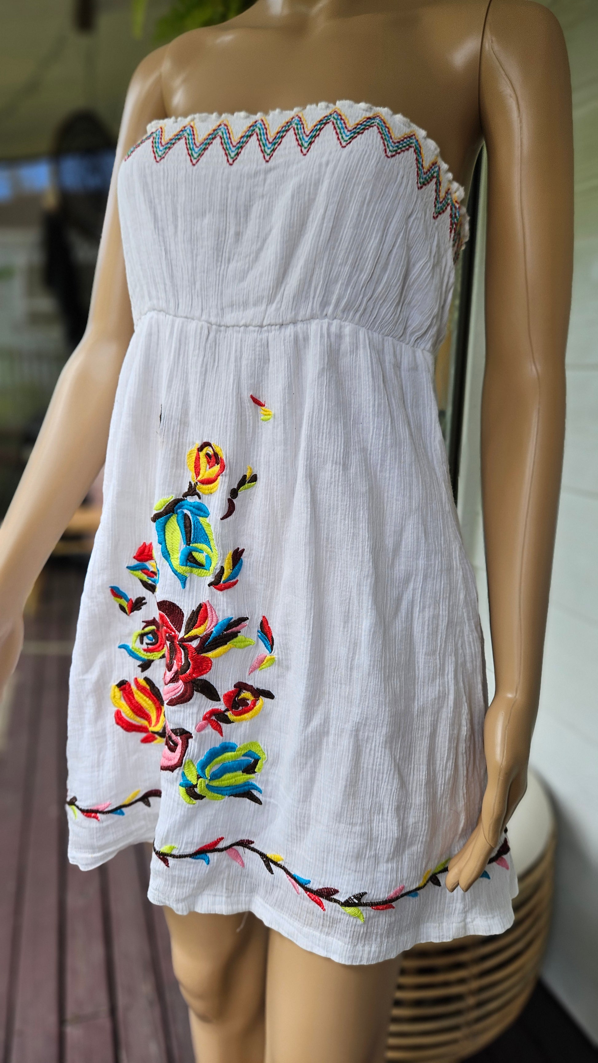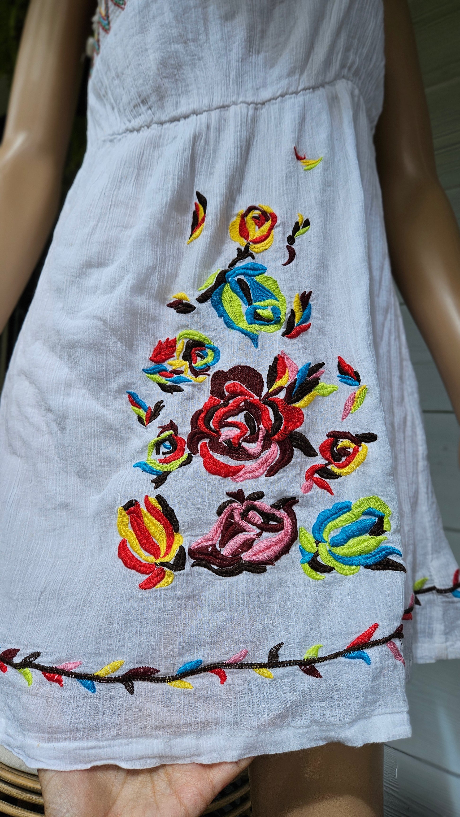 Stunning summer dress in a gorgeous style featuring floral embroidered details.