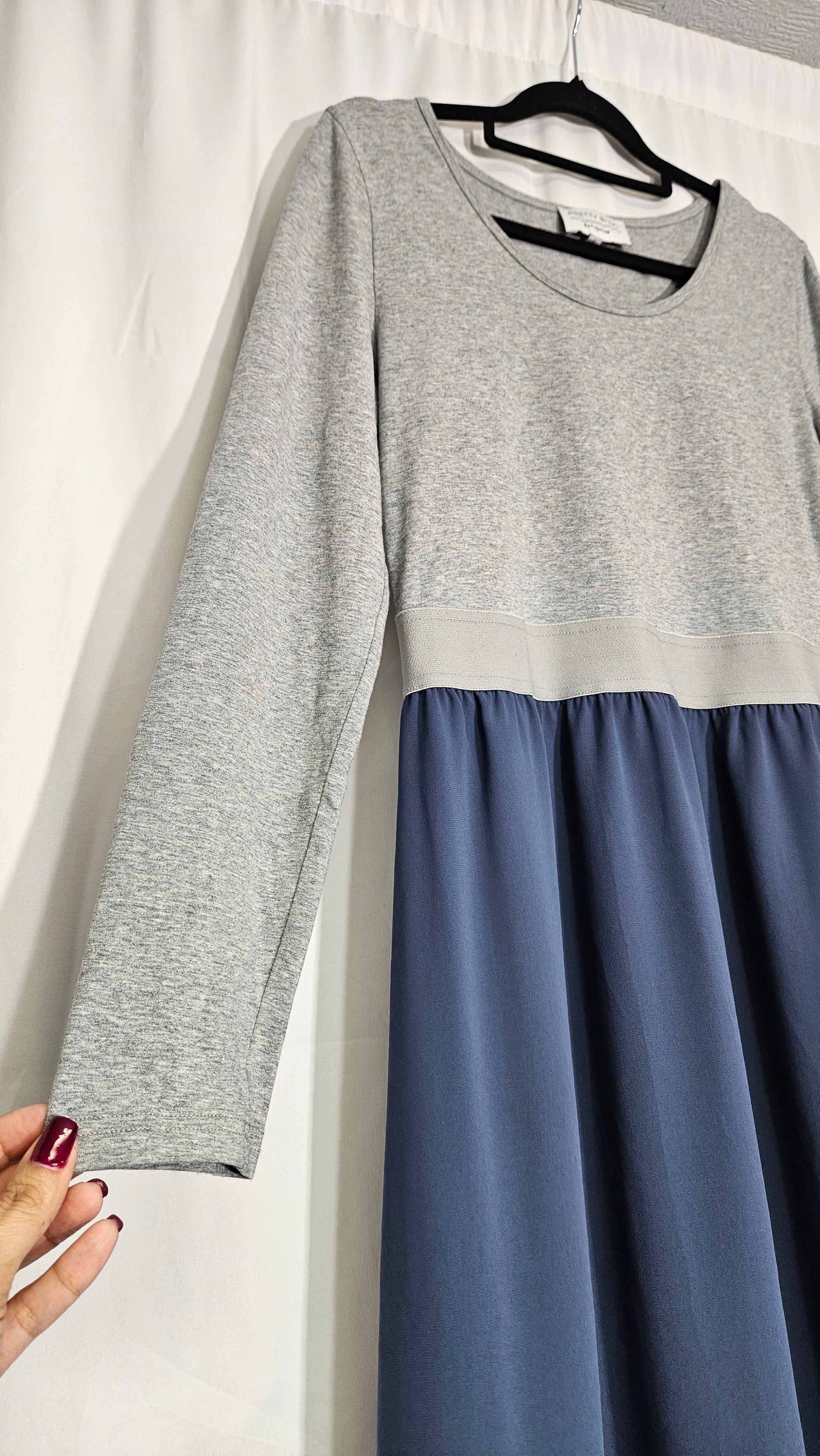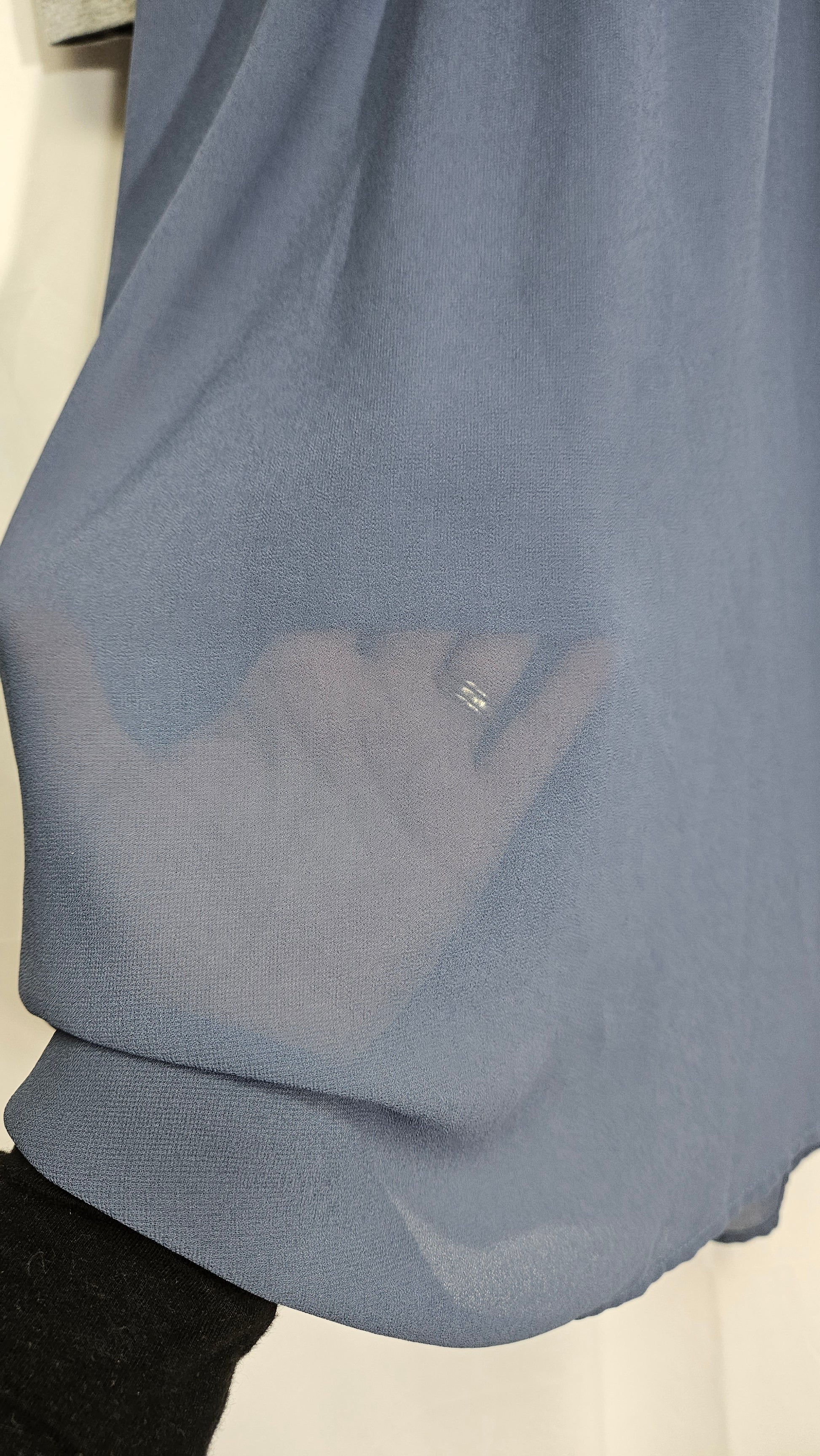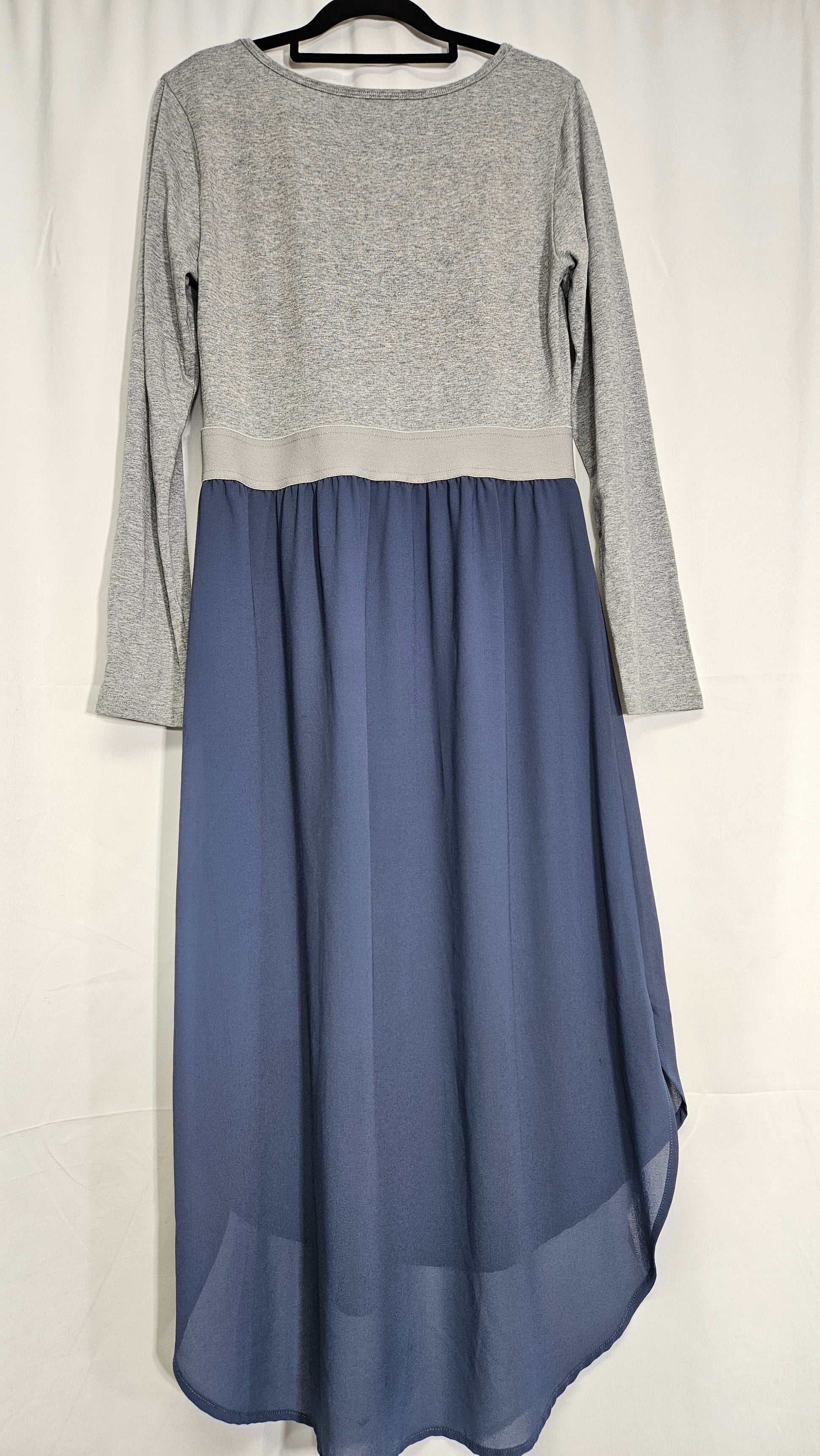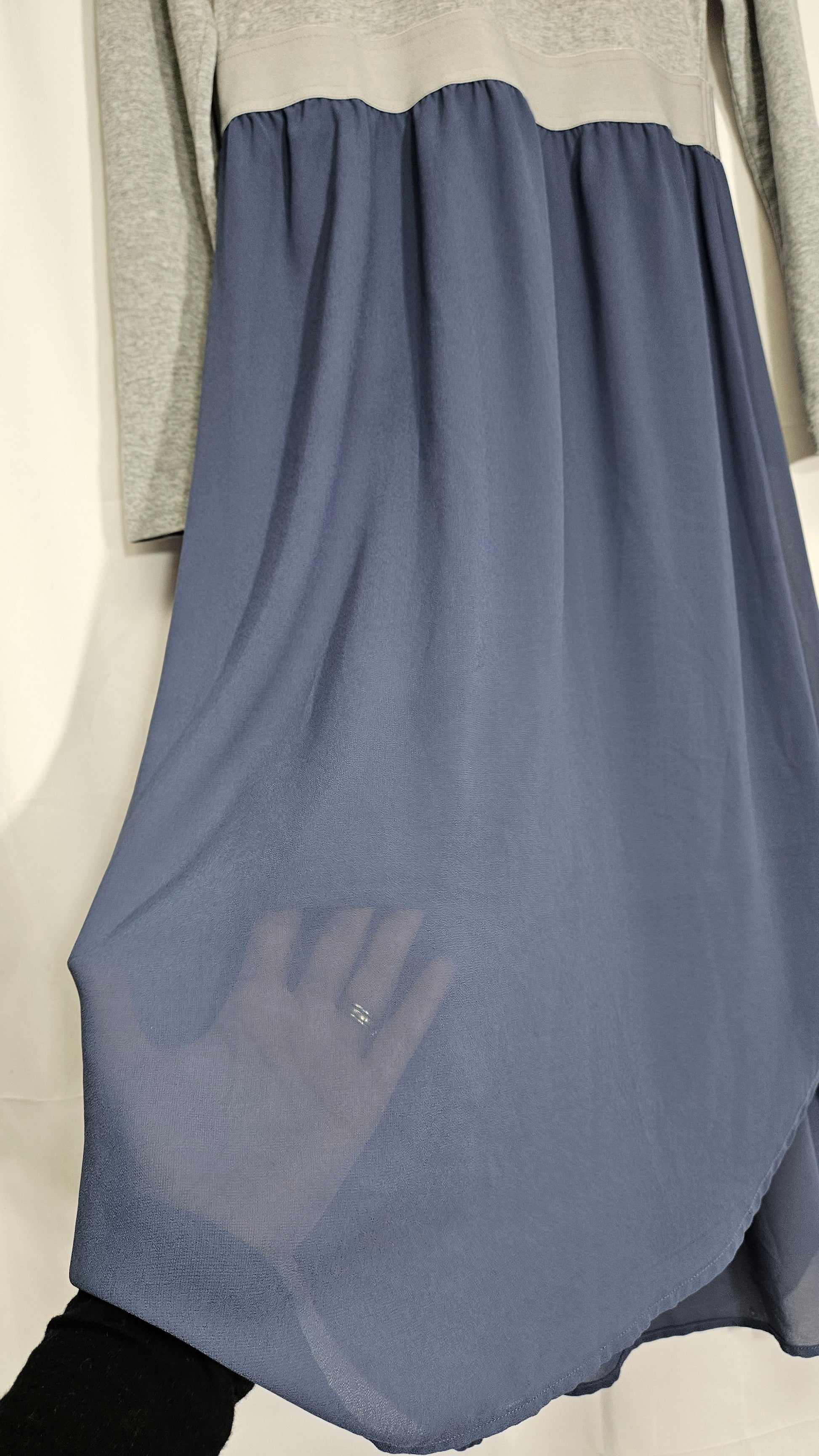 Fitted jersey top with chunky waistband and floaty chiffon skirt. Size S. Good preloved condition.