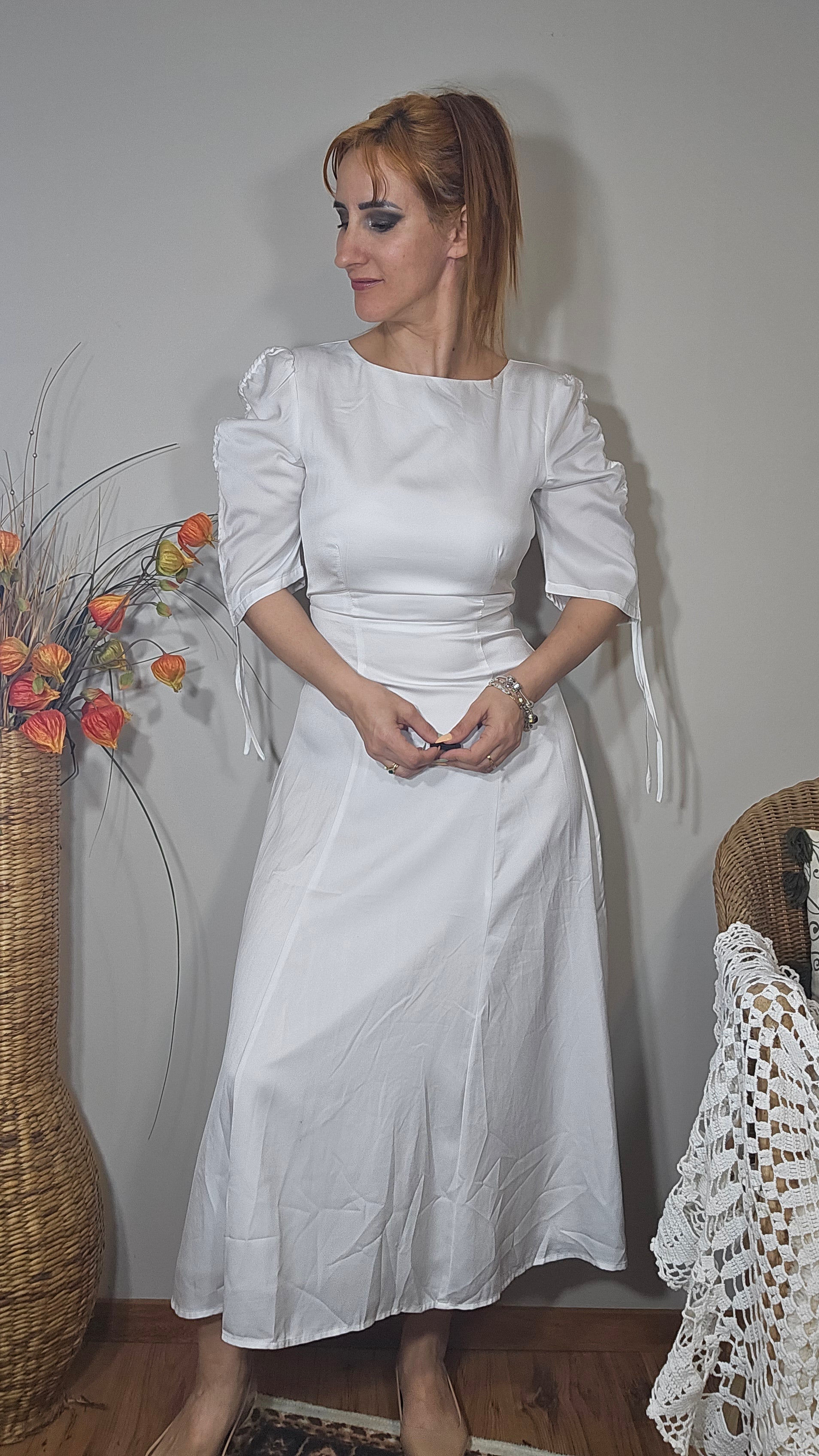 Stunning puff sleeves adds an extra touch of elegance while the midi length give a modest yet trendy look.