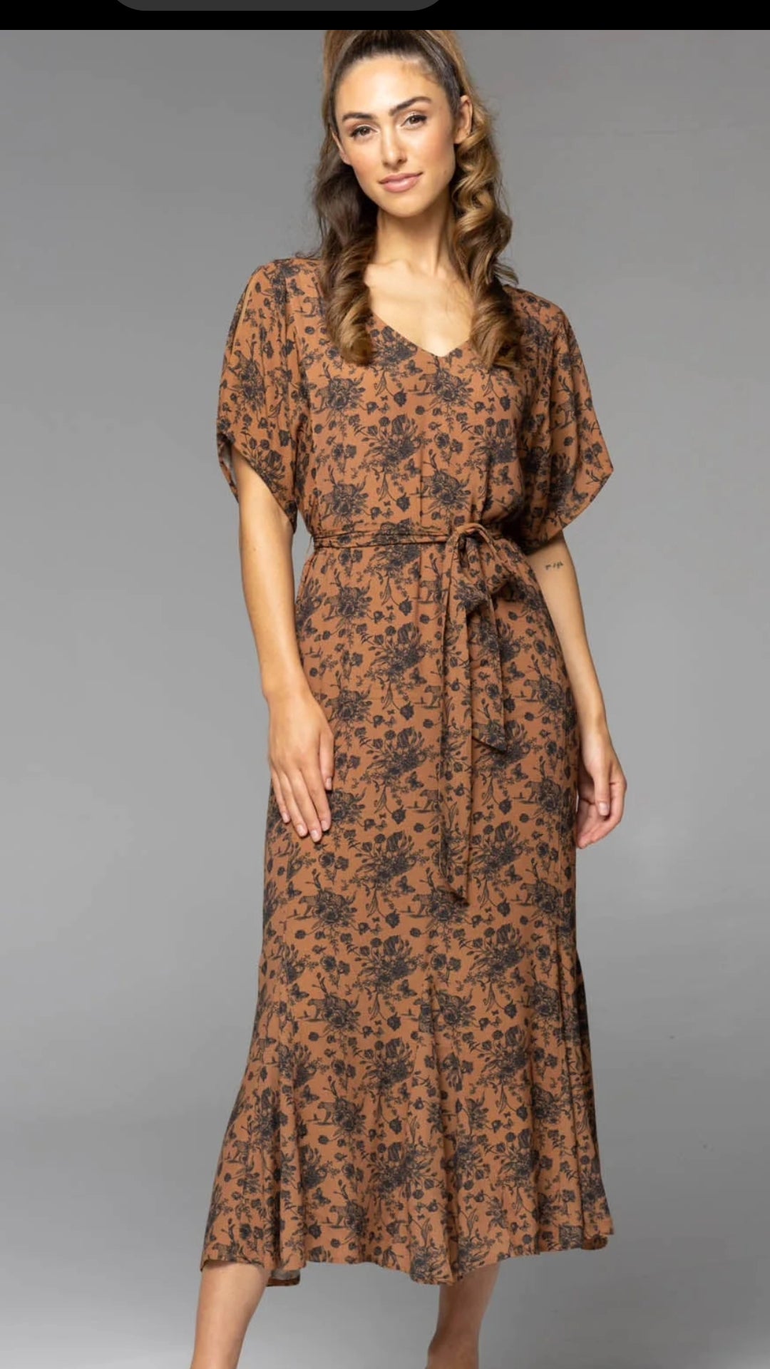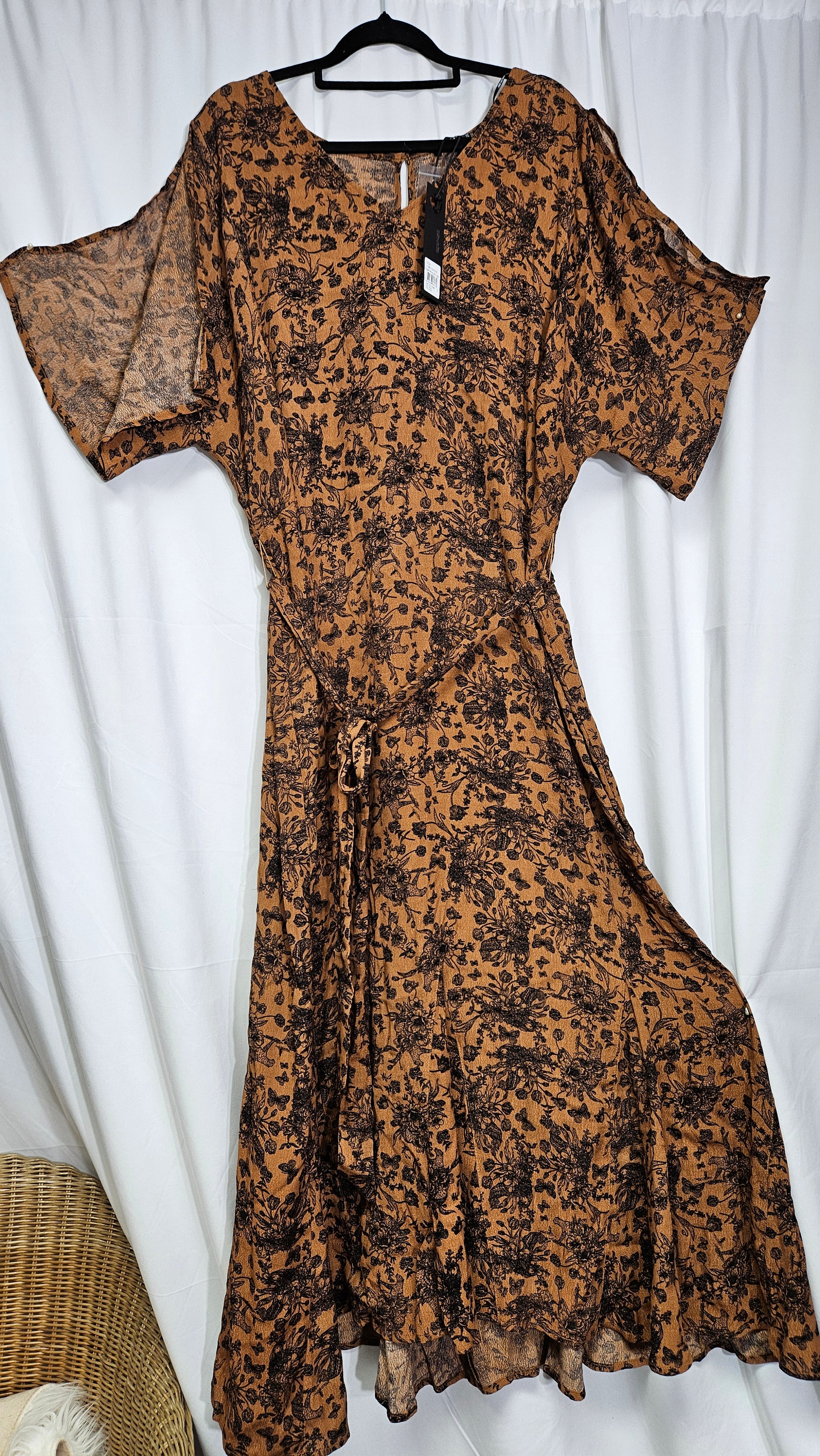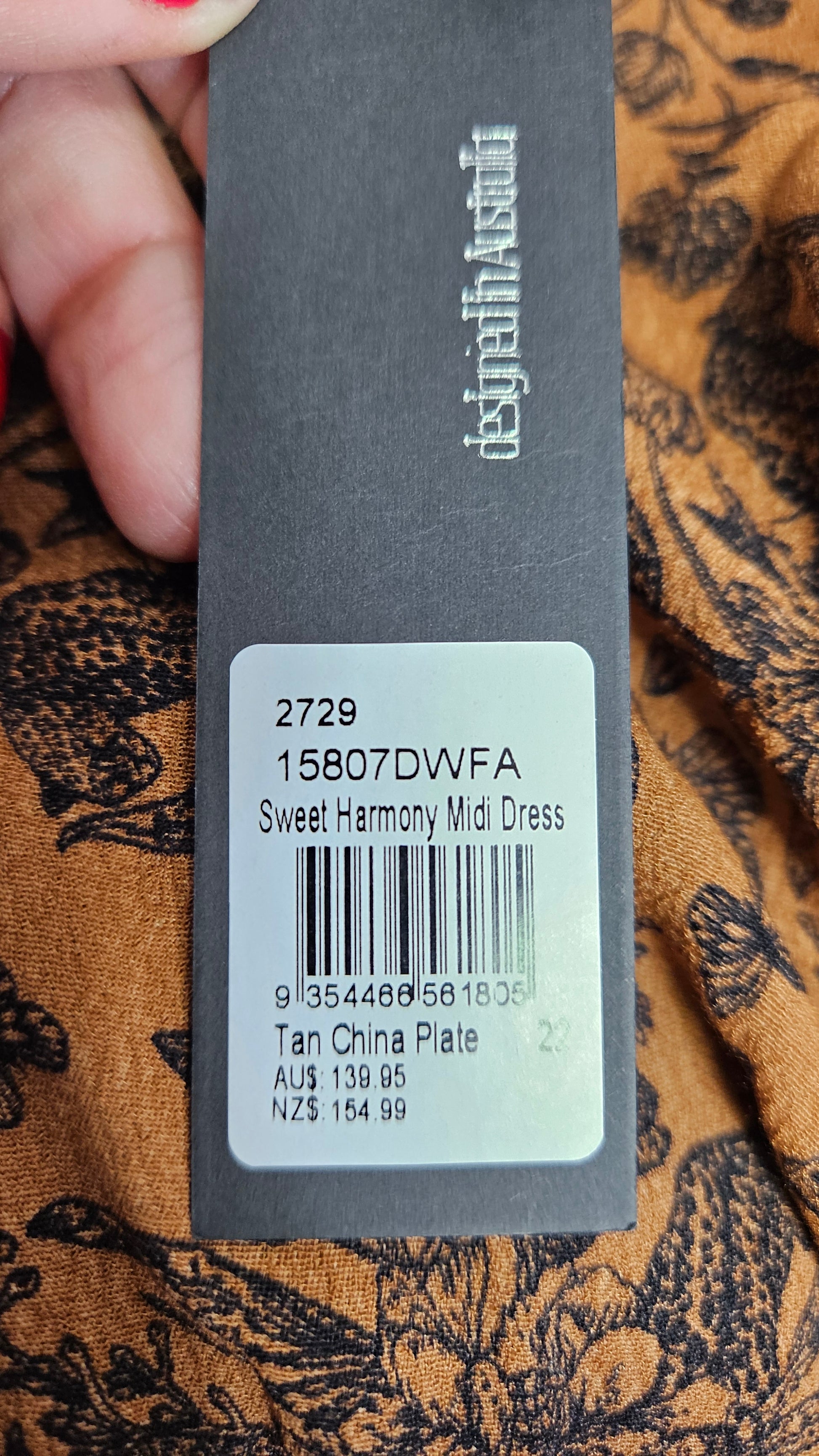 Sweet Harmony Midi Dress Tan curvy Preloved Dress Size 22 brand new