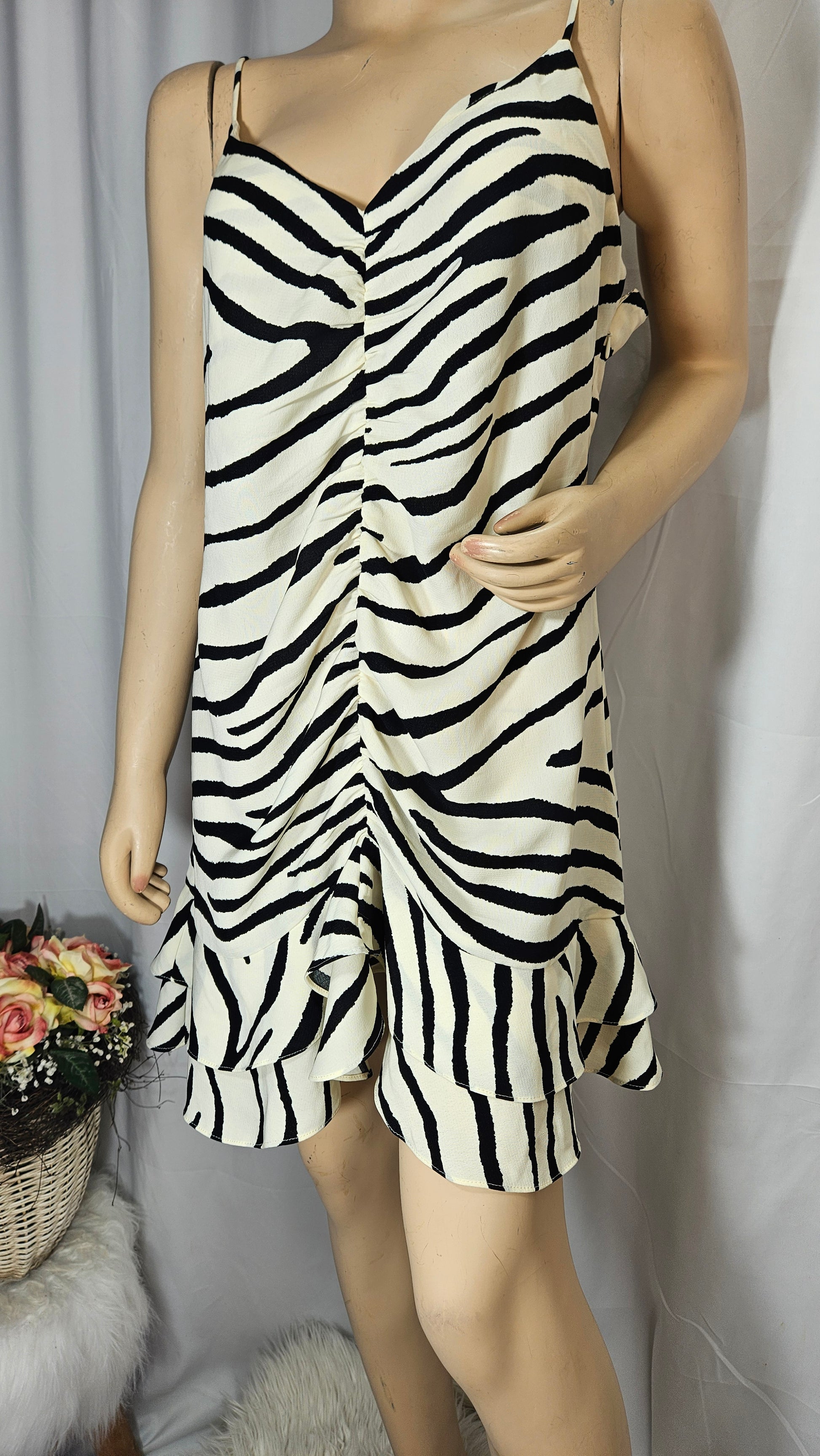 H&M Women's zebra Print Dress Short dress in size large, zipper on a side.